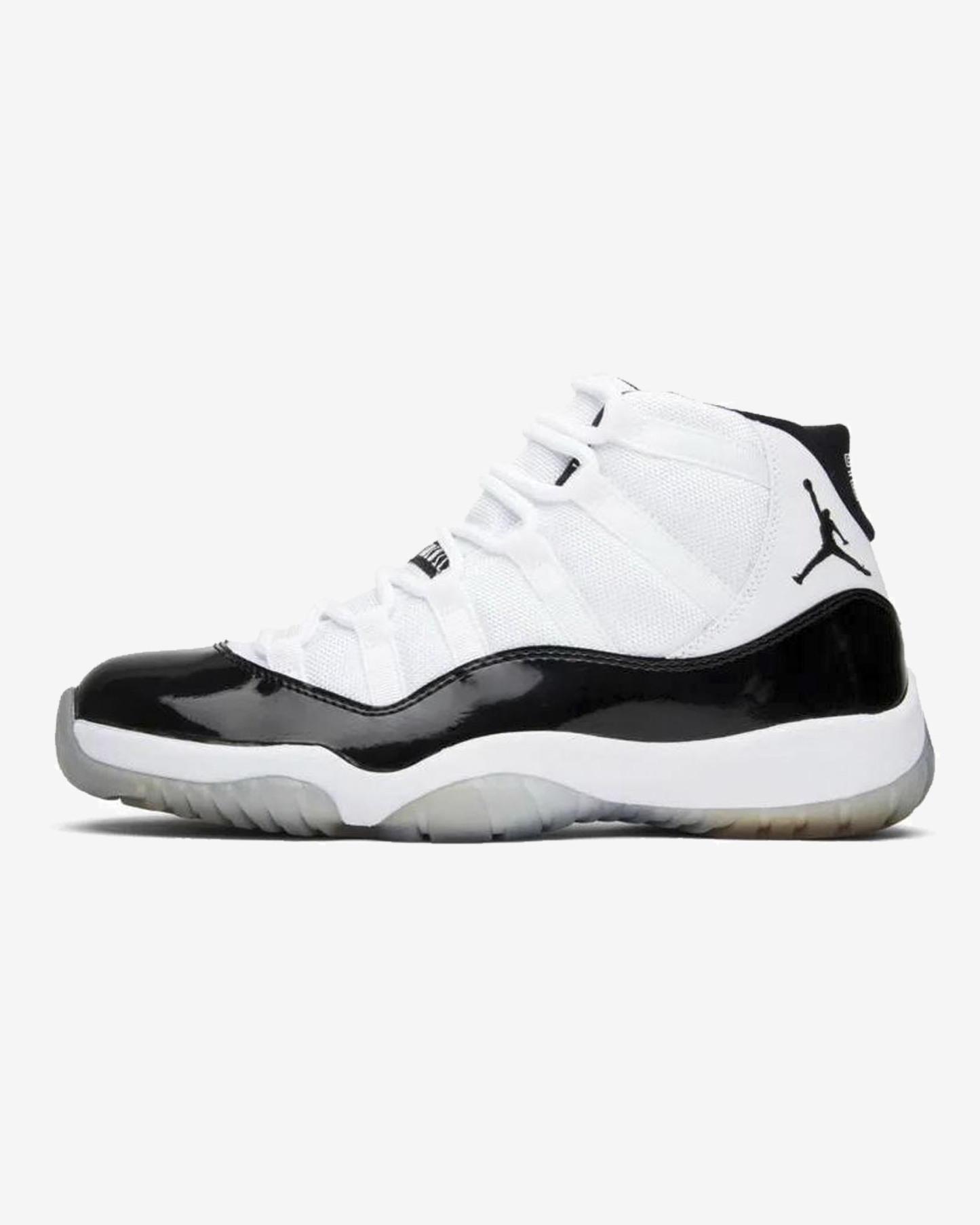 The Air Retro 11 閳ユゥoncord閳?2011 features a white mesh upper with black patent leather overlays and concord branding. first wore these sneakers in Game 2 of the 1995 Eastern Conference Finals. This is the first basketball shoe with a patent leather upper and was famously paired with tuxedos at the 1996 Grammys by Boyz II Men. The sneaker was retroed for the first time in 2000 . and again in 2006 as part of the Defining Moments Package (alongside the Air 6).