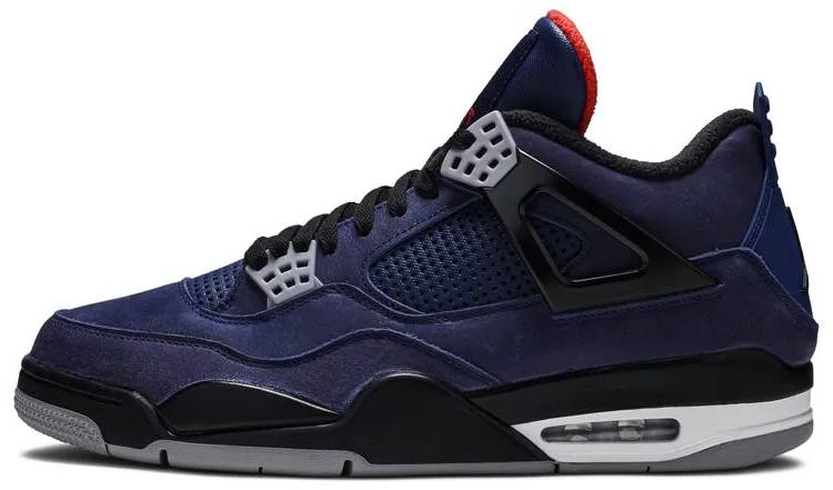 The Air 4 Winter is a rugged reboot of the iconic sneaker to tackle cold temperatures. Released in December 2019 . this edition is created with a Loyal Blue nubuck upper . laser-cut insets and a rubberized tongue. Bold red fleece insulates the interior. Signature tooling includes contrast lace wings . a tonal TPU heel panel and custom tongue tag. The Air-encapsulating midsole and herringbone rubber outsole return for support and traction.
