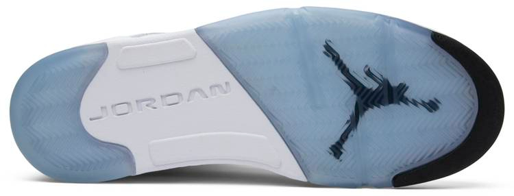 Released in April of 2015 . the Air 5 Retro 閳ユコetallic White閳?2015 offers a remastered version of the colorway first released back in 2000. The sneaker has a white tumbled leather upper with metallic silver and black accents on an ice blue translucent outsole.