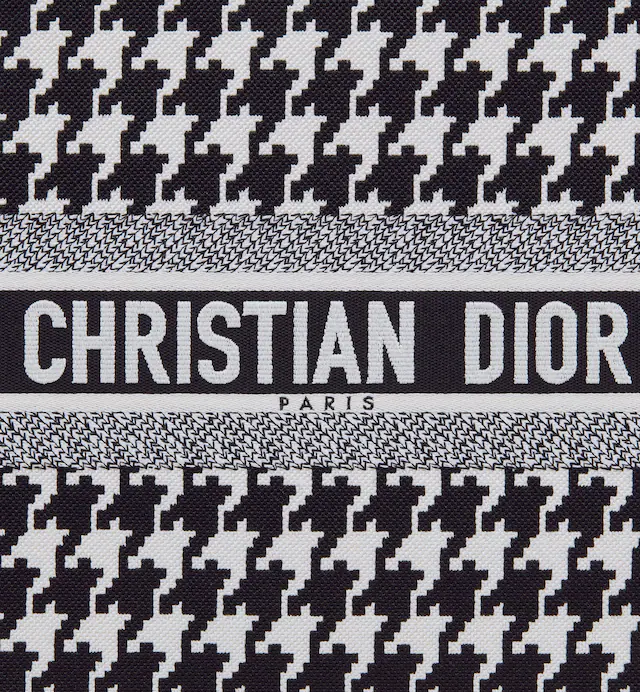Introduced by Maria Grazia Chiuri, Creative Director of Christian , the Book Tote has become a staple of the aesthetic. Designed to hold all the daily essentials, the style is fully embroidered with the black and white macro Houndstooth motif, playing on House codes in a black macro variation of the iconic pattern. Exemplifying House savoir-faire, the medium tote is adorned with the Christian Paris signature on the front, and may be carried by hand or worn over the shoulder.