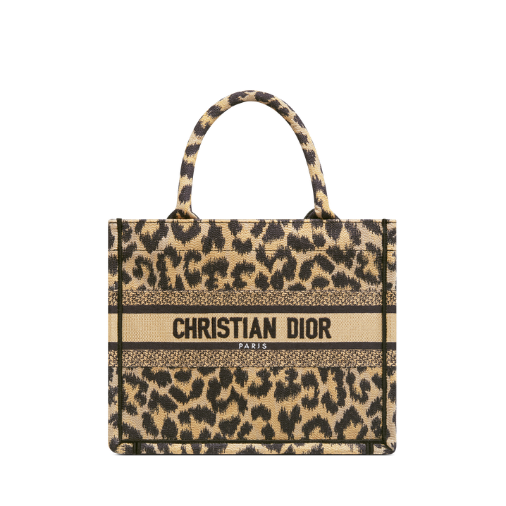 Introduced by Maria Grazia Chiuri, Creative Director of Christian , the Book Tote has become a staple of the aesthetic. Designed to hold all the daily essentials, the style is embroidered with the beige and black Mizza motif, inspired by a leopard pattern from House archives. Adorned with the Christian Paris signature on the front, the small tote exemplifies the House's signature savoir-faire and may be carried by hand.
