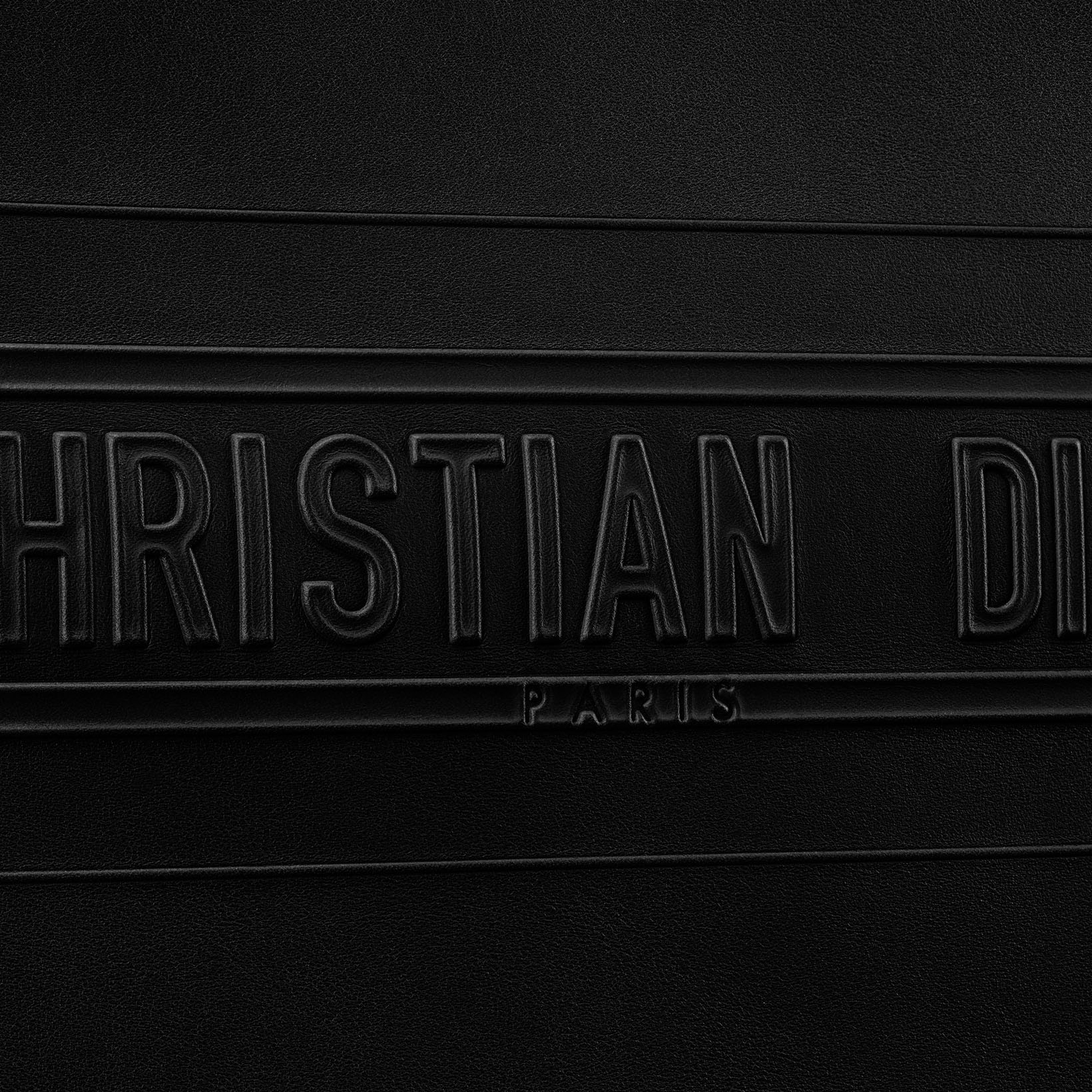Introduced by Maria Grazia Chiuri, Creative Director of Christian , the Book Tote has become a staple of the aesthetic. Designed to hold all the daily essentials, the black calfskin style is further enhanced by the Christian Paris signature on the front. The medium tote exemplifies the House's signature savoir-faire and may be carried by hand or worn over the shoulder.