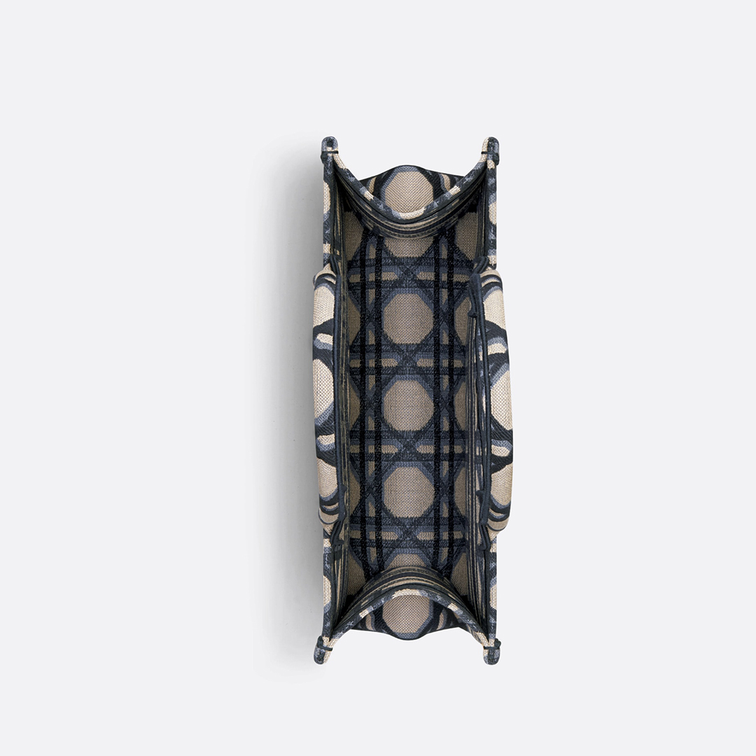 Introduced by Maria Grazia Chiuri, Creative Director of Christian , the Book Tote has become a staple of the aesthetic. Designed to hold all the daily essentials, the style is fully embroidered with the beige and blue Macrocannage motif and is adorned with the Christian Paris signature on the front. Exemplifying the House's signature savoir-faire, the medium tote may be carried by hand or worn over the shoulder.