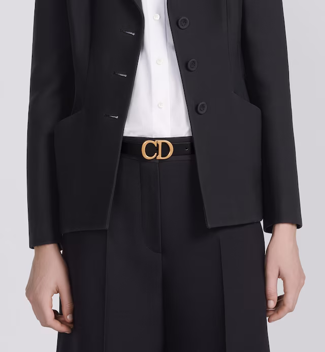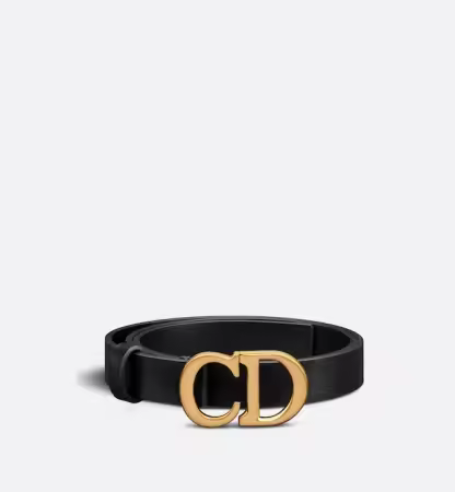 The Saddle Belt has become a House icon and wardrobe classic. Ultrasmooth calfskin gives it a smooth feel and elegant finish. The black style features the CD buckle in antique gold-finish metal and has a slim silhouette that will add shape to a skirt, dress or pants.