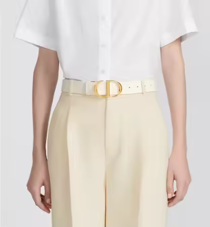 Inspired by the hallmark namesake bag, the 30 Montaigne belt is offered in a reversible variation, thanks to its swivel feature. Crafted in black smooth calfskin on one side and latte smooth calfskin on the other, it is embellished with the iconic shiny gold-finish metal 'CD' buckle. The design also features two removable loops that can be worn in an either tonal or contrasting fashion. The timeless accessory elegantly highlights the waist and will coordinate well with jeans, a skirt or a dress.