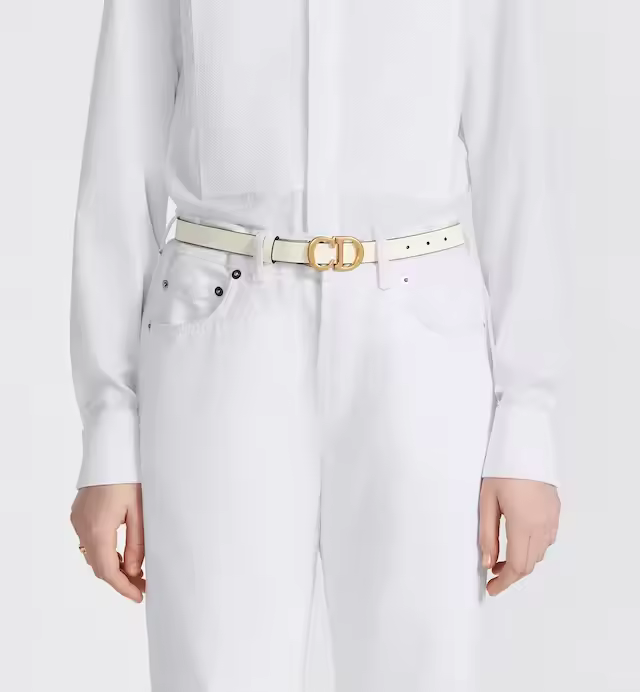 The Saddle Belt has become a House icon and wardrobe classic. Ultrasoft calfskin gives it a smooth feel and elegant finish. The latte style features the CD buckle in antique gold-finish metal and has a slim silhouette that will add shape to a skirt, a dress or pants.