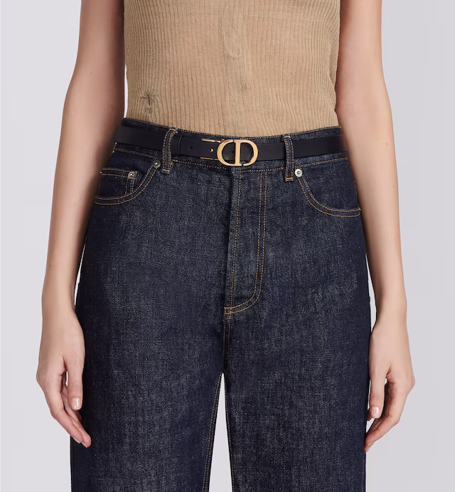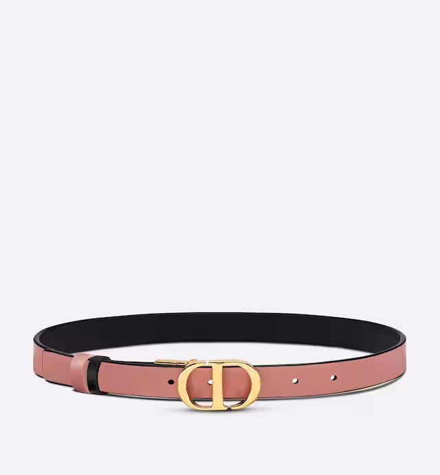 Inspired by the hallmark namesake bag, the 30 Montaigne belt is offered in a reversible variation, thanks to its swivel feature. Crafted in black smooth calfskin on one side and Ethereal pink on the other, it is embellished with the iconic shiny gold-finish metal CD buckle. The design also features two removable loops that can be worn in an either tonal or contrasting fashion. The timeless accessory elegantly highlights the waist and will coordinate well with jeans, a skirt or a dress.