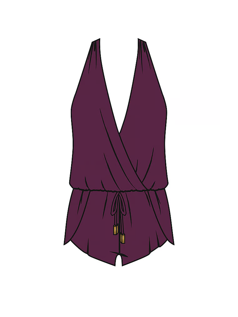 From beach to brunch, this flirty style does it all. A water-ready romper covers a full-shaping swimsuit for an on-trend look that provides both coverage and compression.