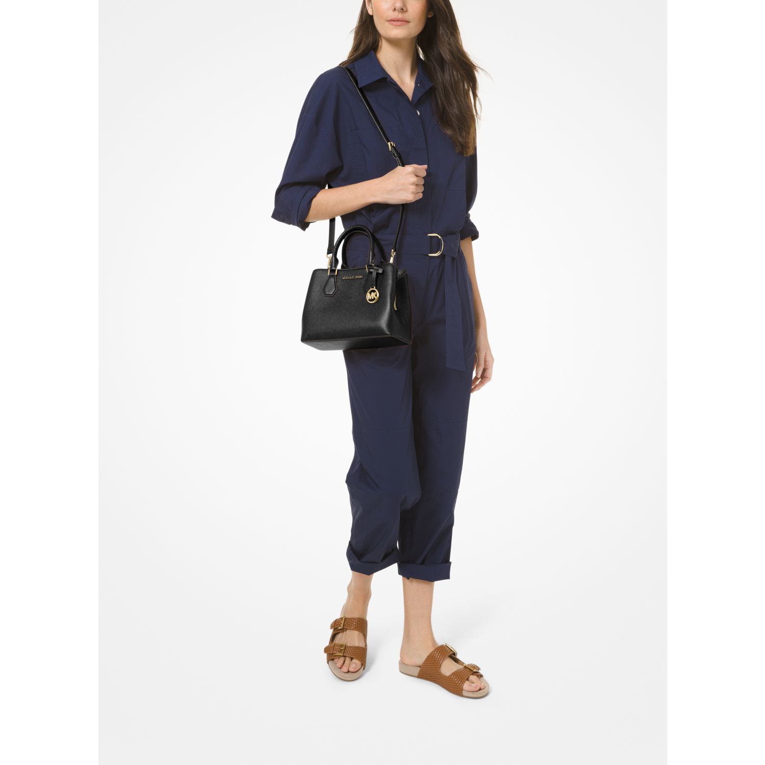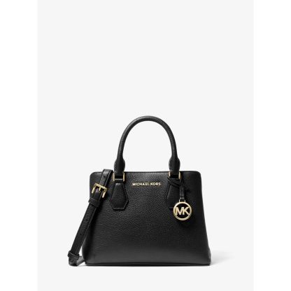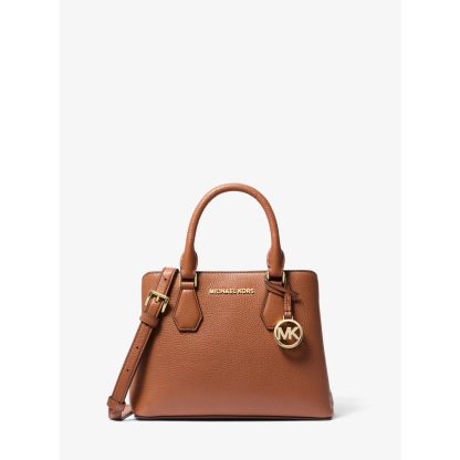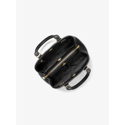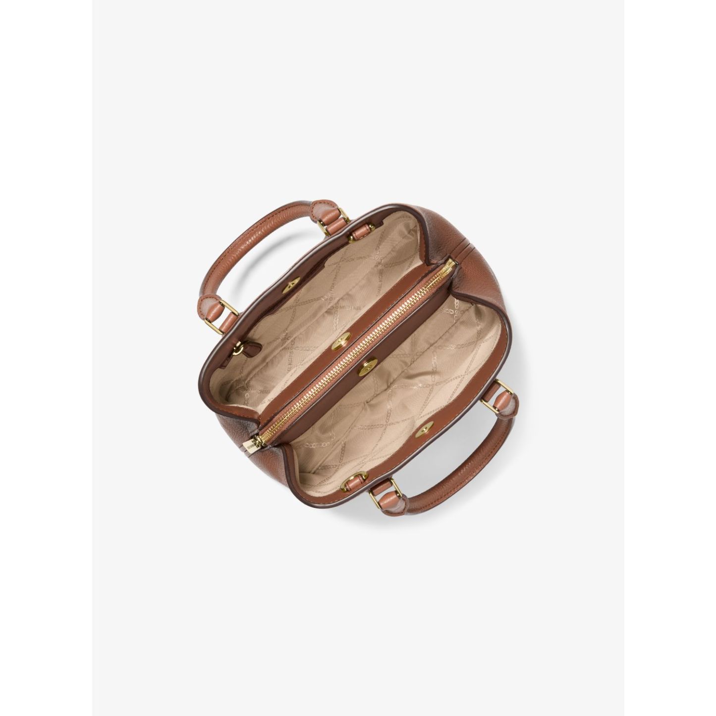 Our Camille satchel is a versatile addition to your daily commute. Crafted from pebbled leather in a sleek, architectural shape, it features structured top handles and a detachable strap. A center zip compartment and multiple interior pockets will keep all your essentials in perfect order, while our gleaming charm adds a touch of glamour to everyday looks.