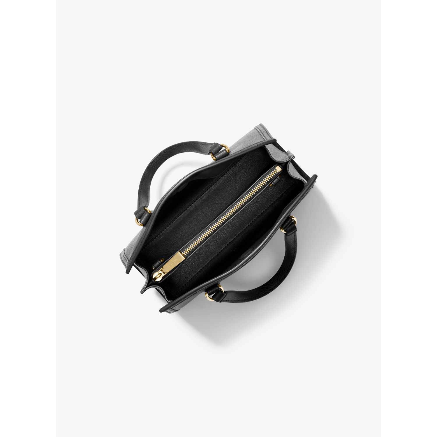 • Interior details: center zip compartment