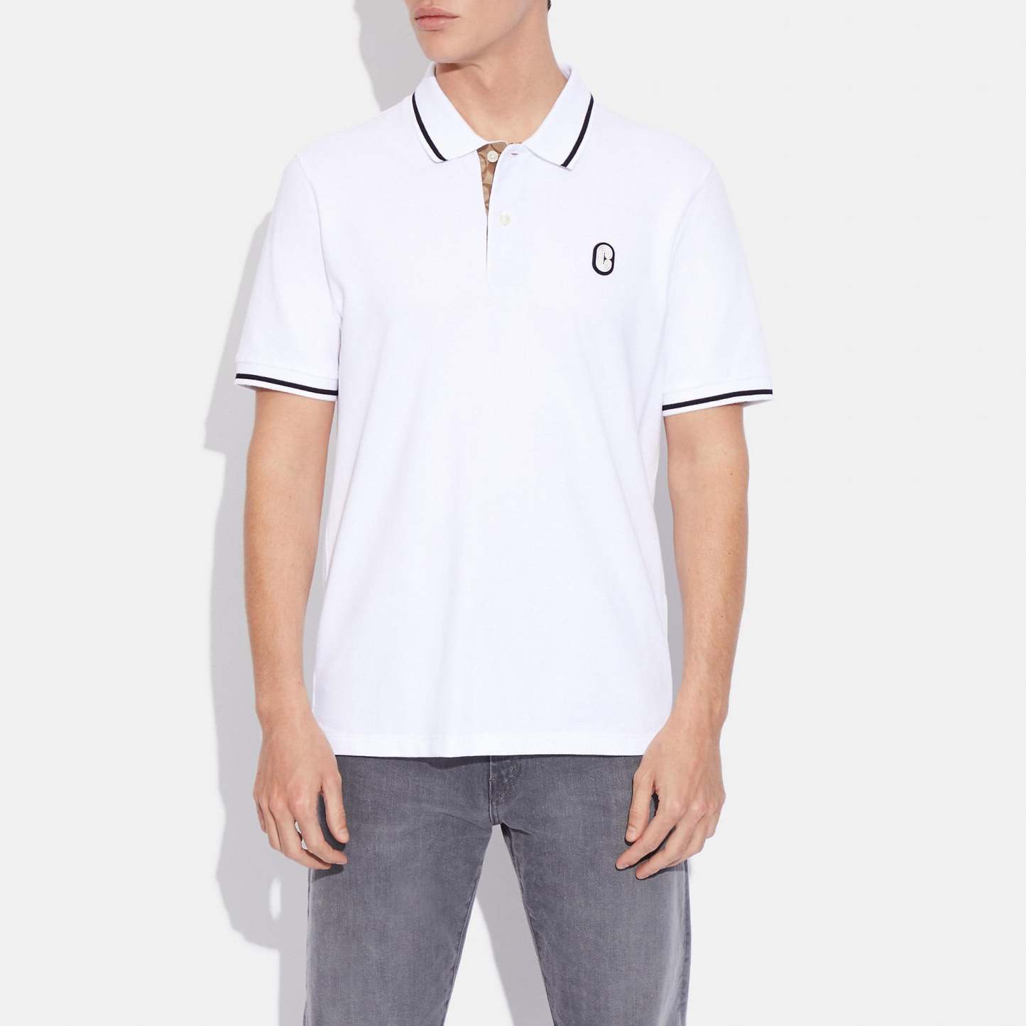 100% cotton Button closure Length - 28 1/4 Model is 6'2 (188cm) and wears a size M Style No. C9513 | Outlet Polo With Signature Details - White, Size - X-Small