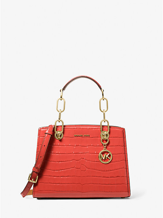 Cynthia Small Crocodile Embossed Leather Satchel
