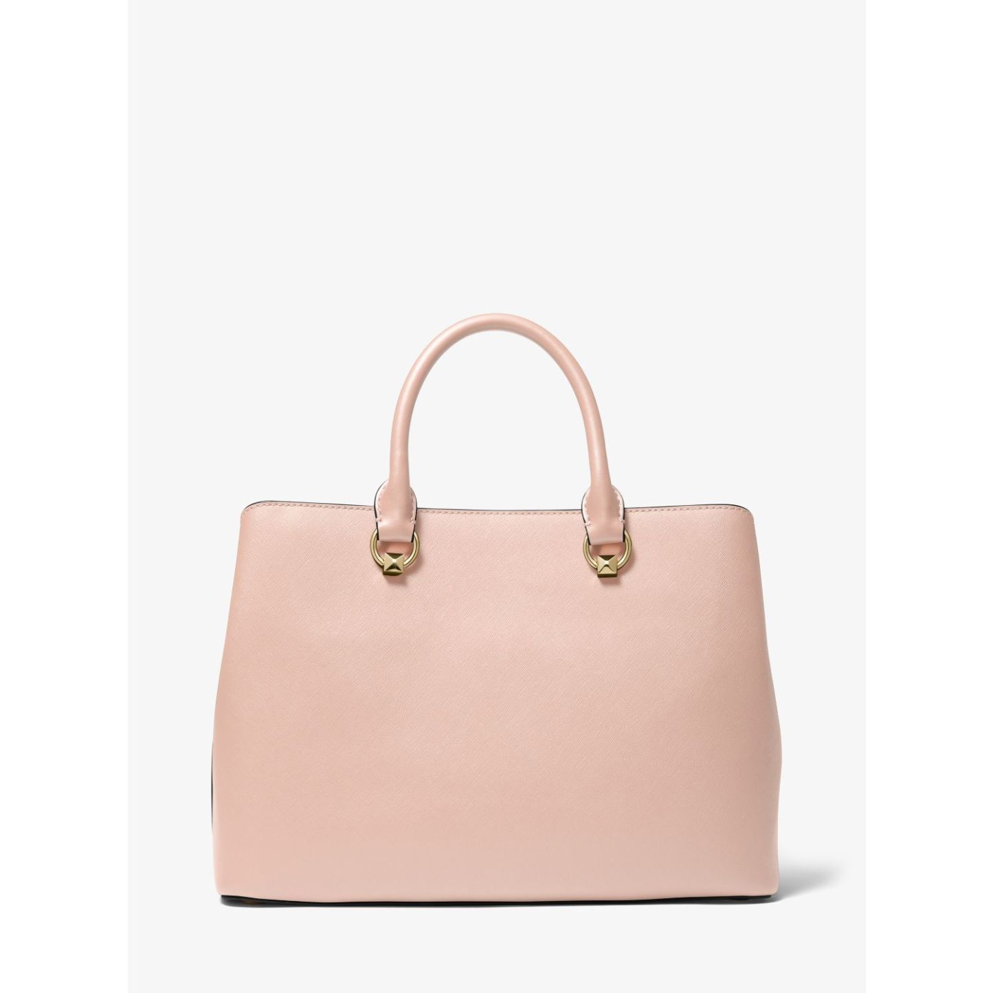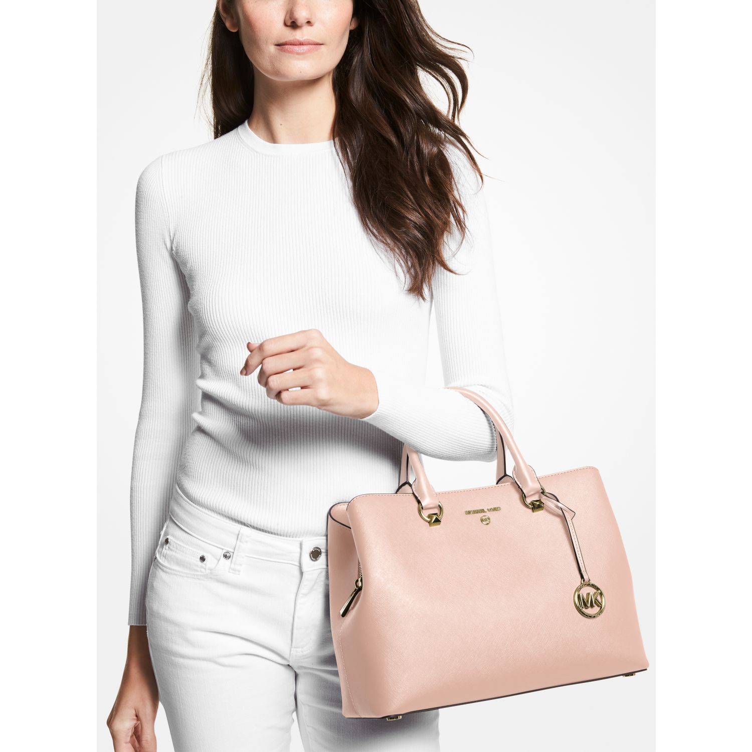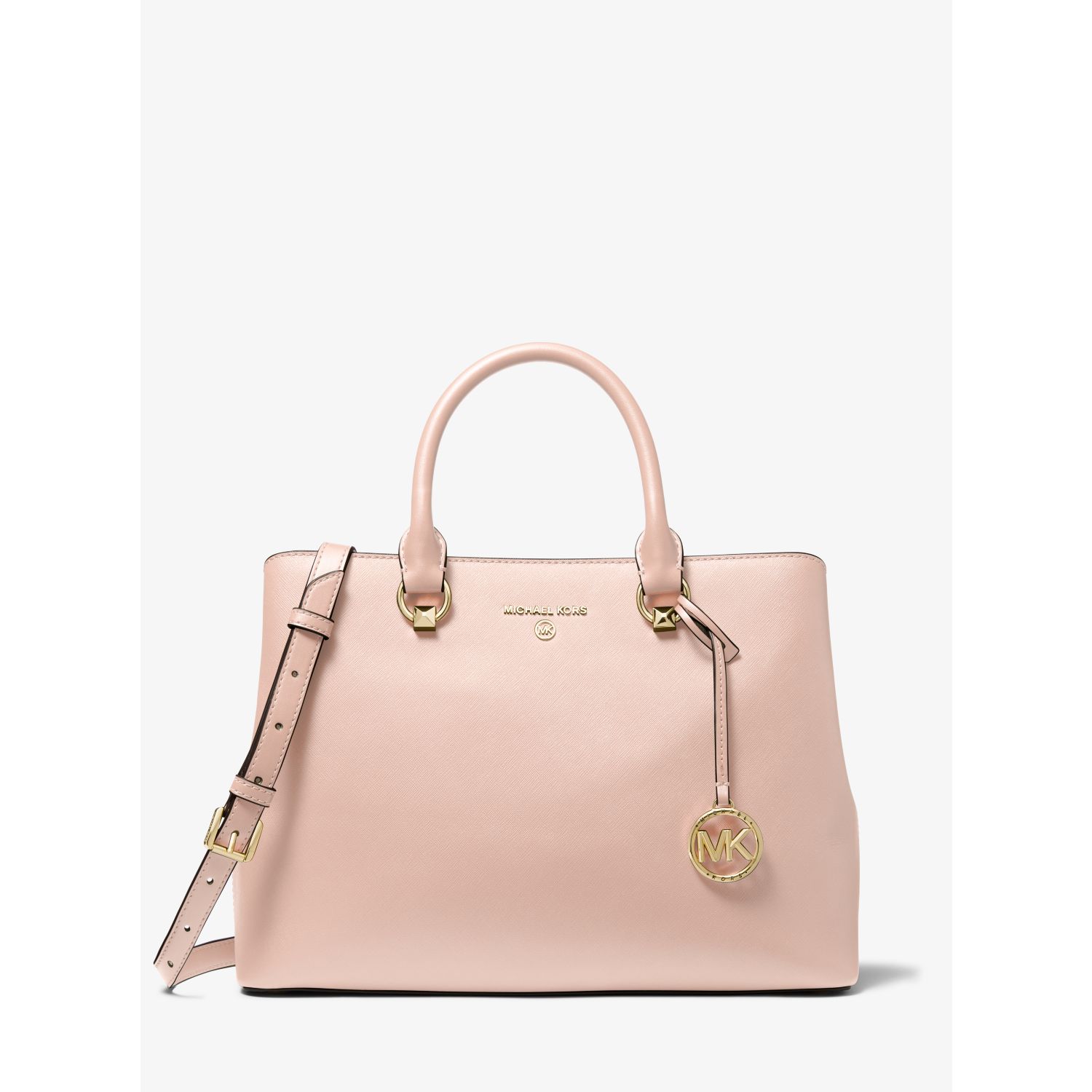 Our Edith satchel combines a little bit of structure with a whole lot of style. It’s crafted from Saffiano leather with gold-tone hardware, and features an adjustable strap that converts it into to a crossbody for on-the-go ease.