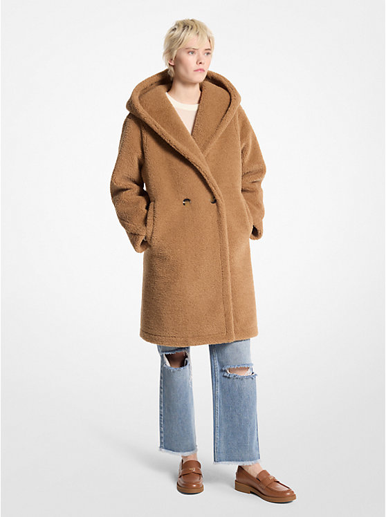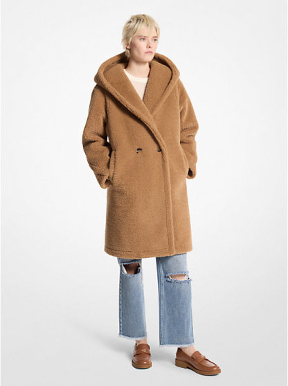 Like cozying up in a warm blanket, this faux fur teddy coat features a longline, double-breasted silhouette and oversized lapels that double as a hood. Layer it over everything from slip dresses to denim jeans.