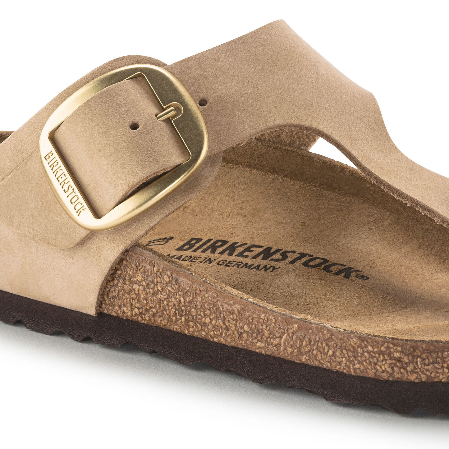 Meet the brand new Gizeh Big Buckle. This classic thong sandal gets a fresh update with an elegant amplified buckle. Feminine style that's comfortable and easy to wear. The footbed is lined with a soft suede & the upper is made from high-quality, nubuck leather.