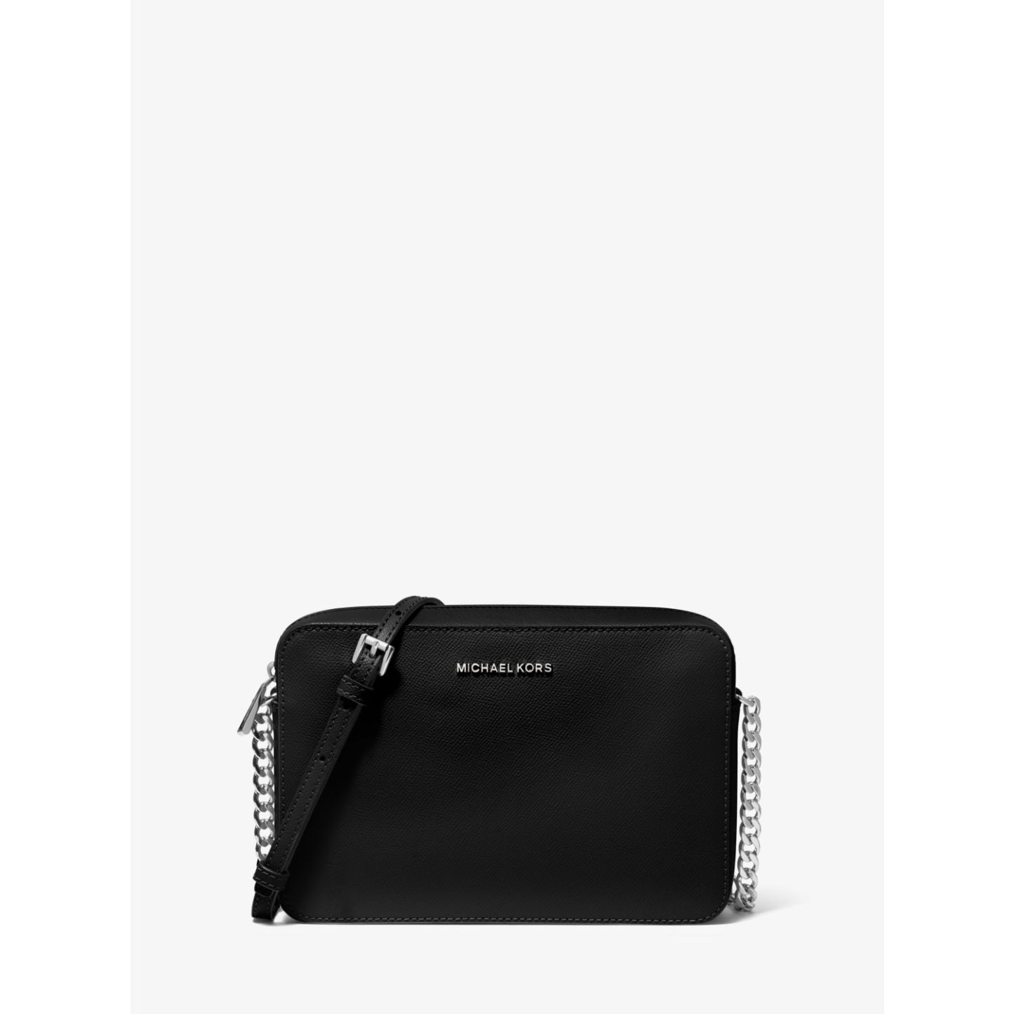 Structured in a clean-lined silhouette crafted from Saffiano leather, our Jet Set crossbody bag is an instant classic. Silver-tone hardware speaks to a luxe sensibility, while a spacious interior offers easy organization for your essentials.