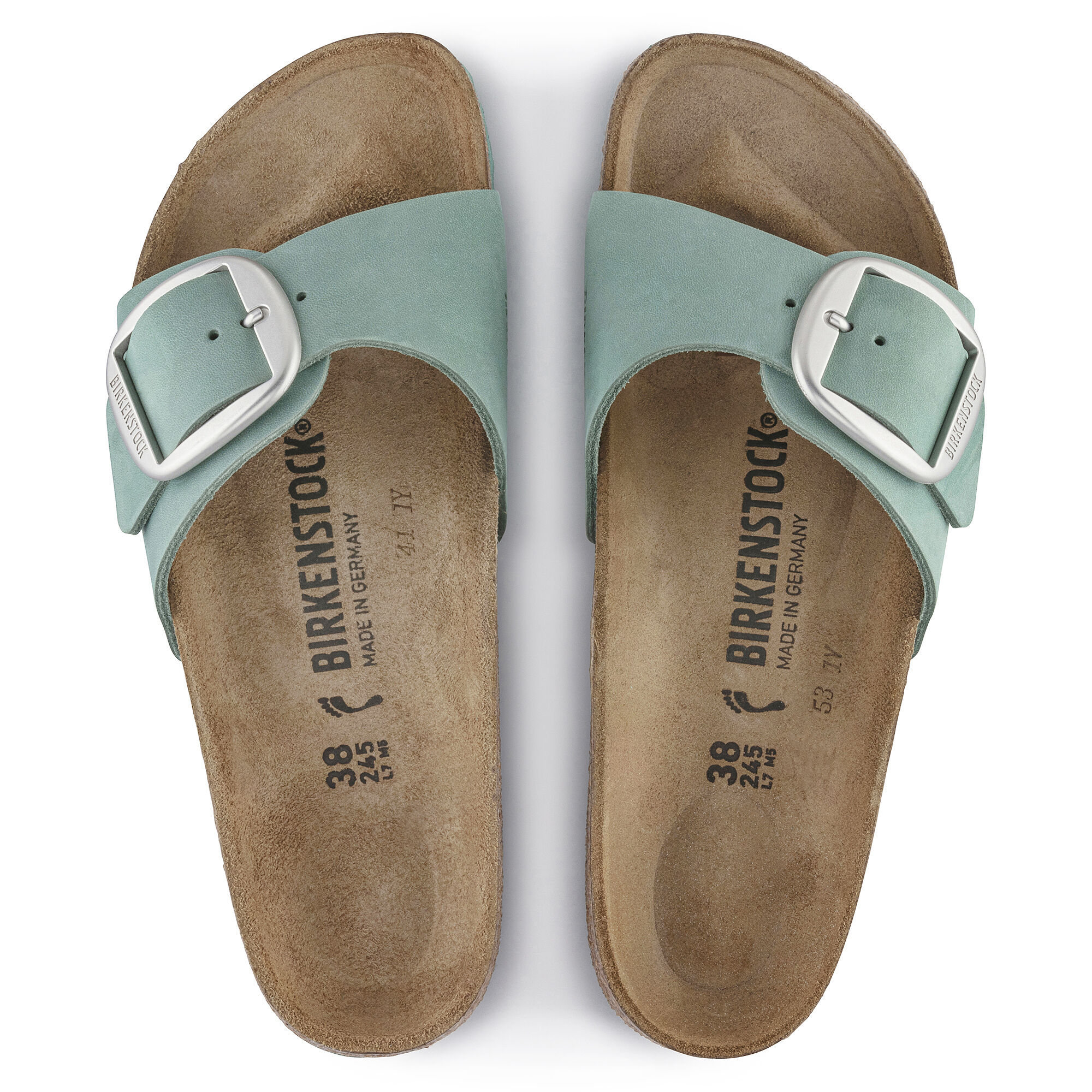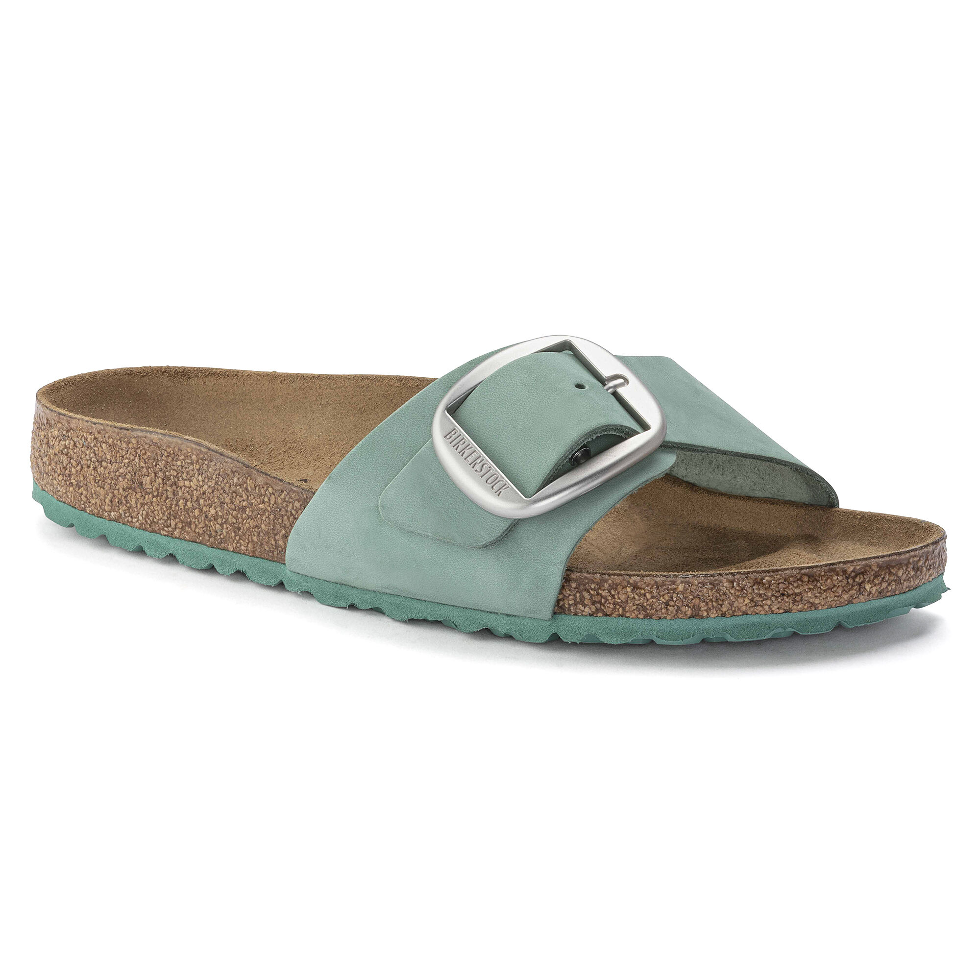 A strap, a buckle and a contoured cork footbed are masterfully combined to create the original Birkenstock sandal - the Madrid. An iconic slide with an amplified buckle accent. Shown in nubuck leather.