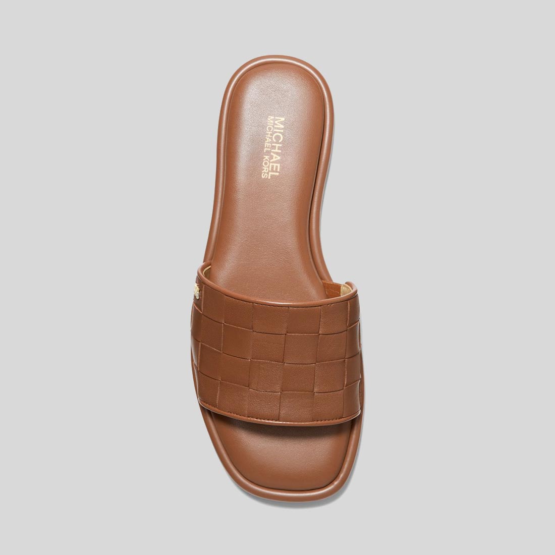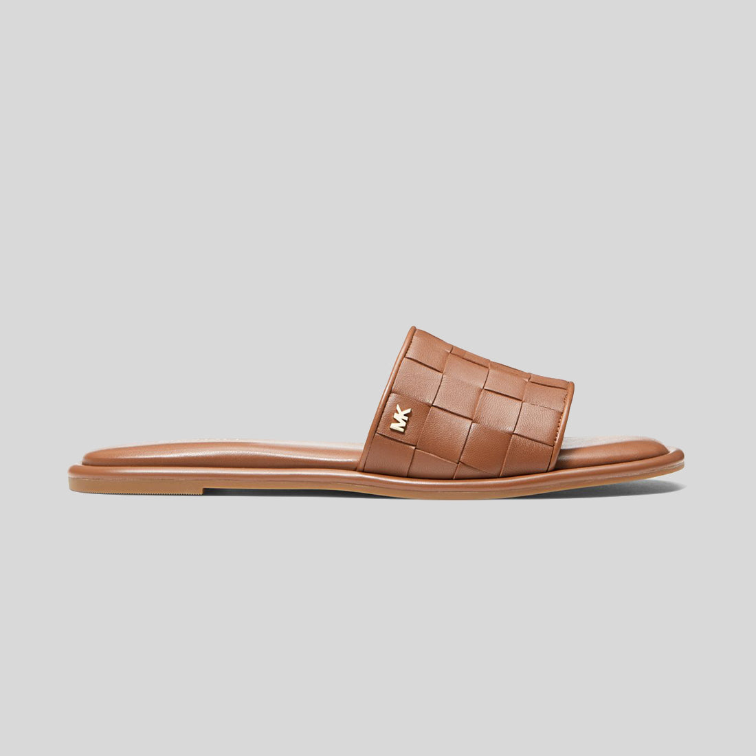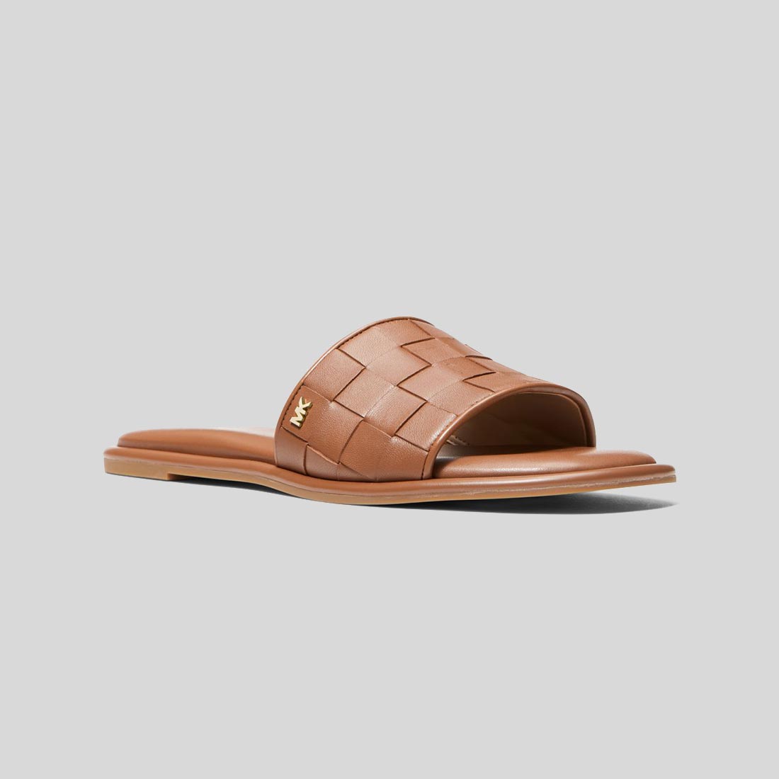 Michaethtl Kors Hayworth Woven Metallic Leather Slide Sandal Luggage 40S3HAFA2L