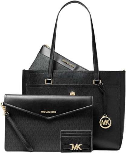 Michaethtl Michael Kors Maisie Large Pebbled Leather 4 in 1 Tote for Women Bundle -Signature Black