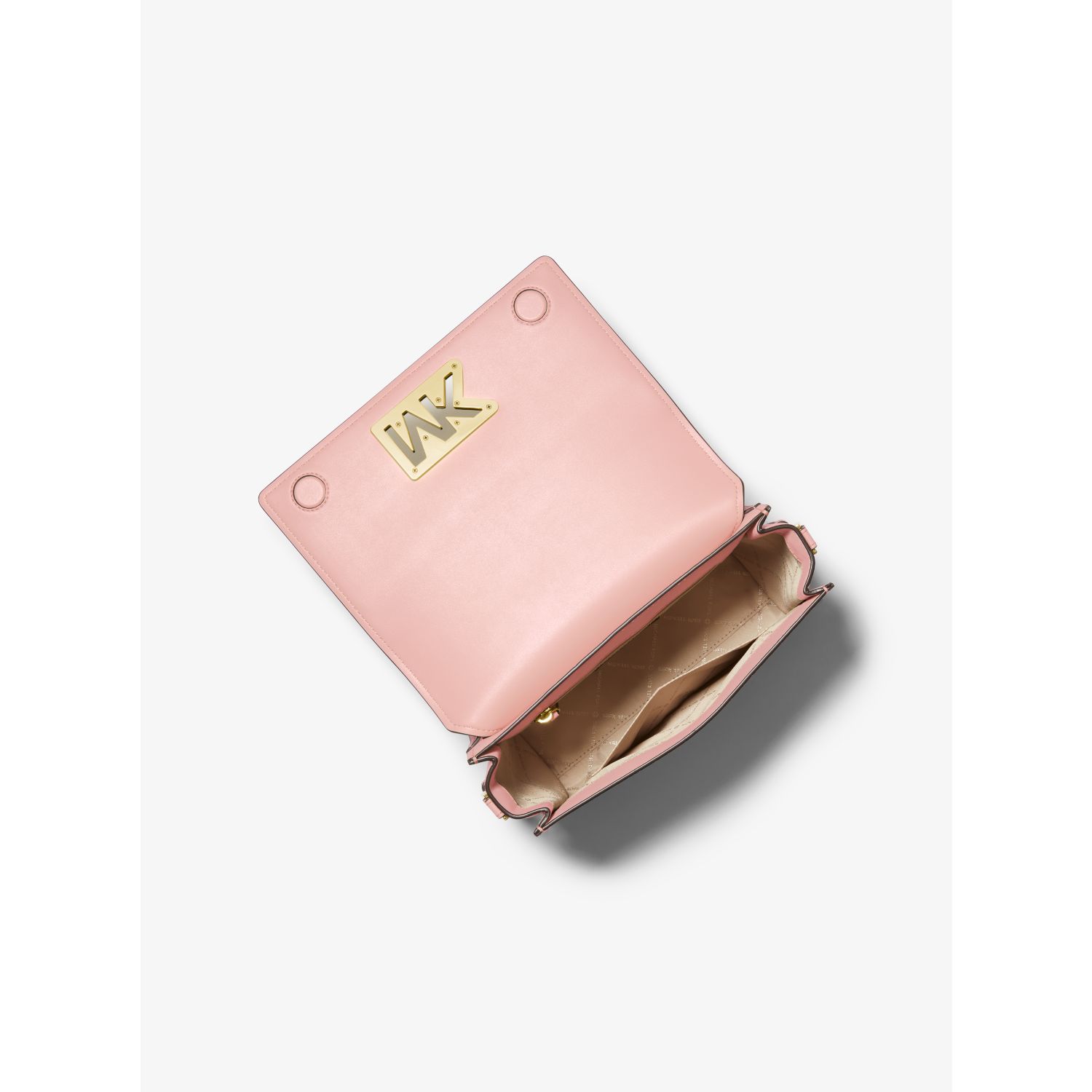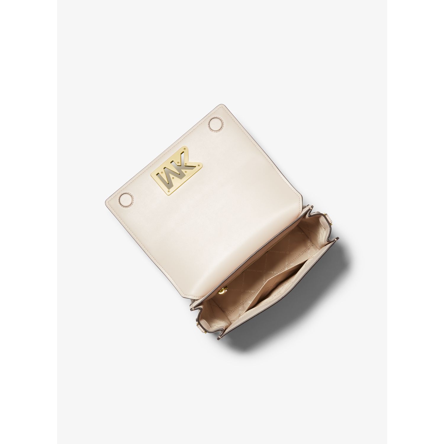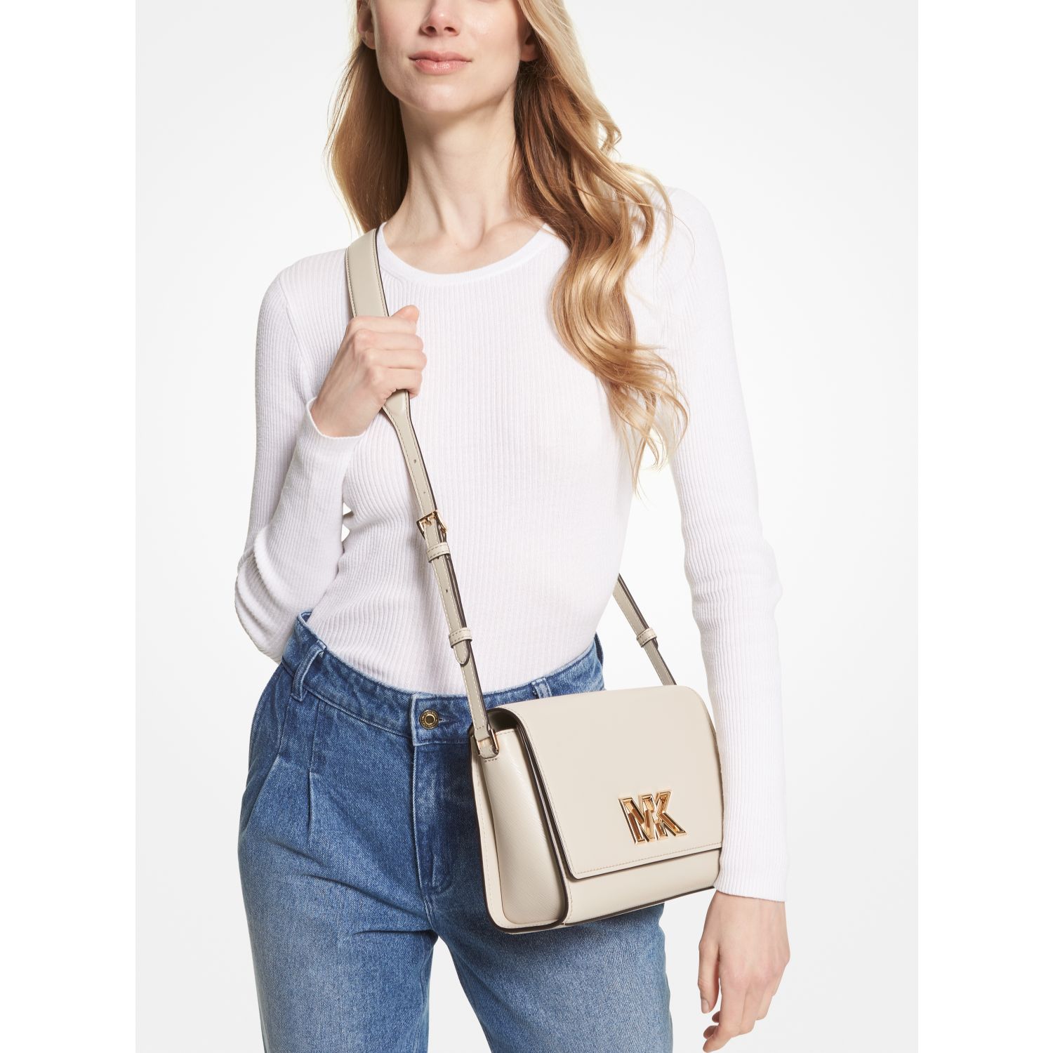 Refresh your wardrobe for the season with Mimi, a messenger bag rendered in a sleek and chic shape. With a fold-over silhouette, this style is crafted from smooth leather with high-shine MK hardware for an extra dose of polish. Adjust the strap to wear it over the shoulder or as a crossbody.