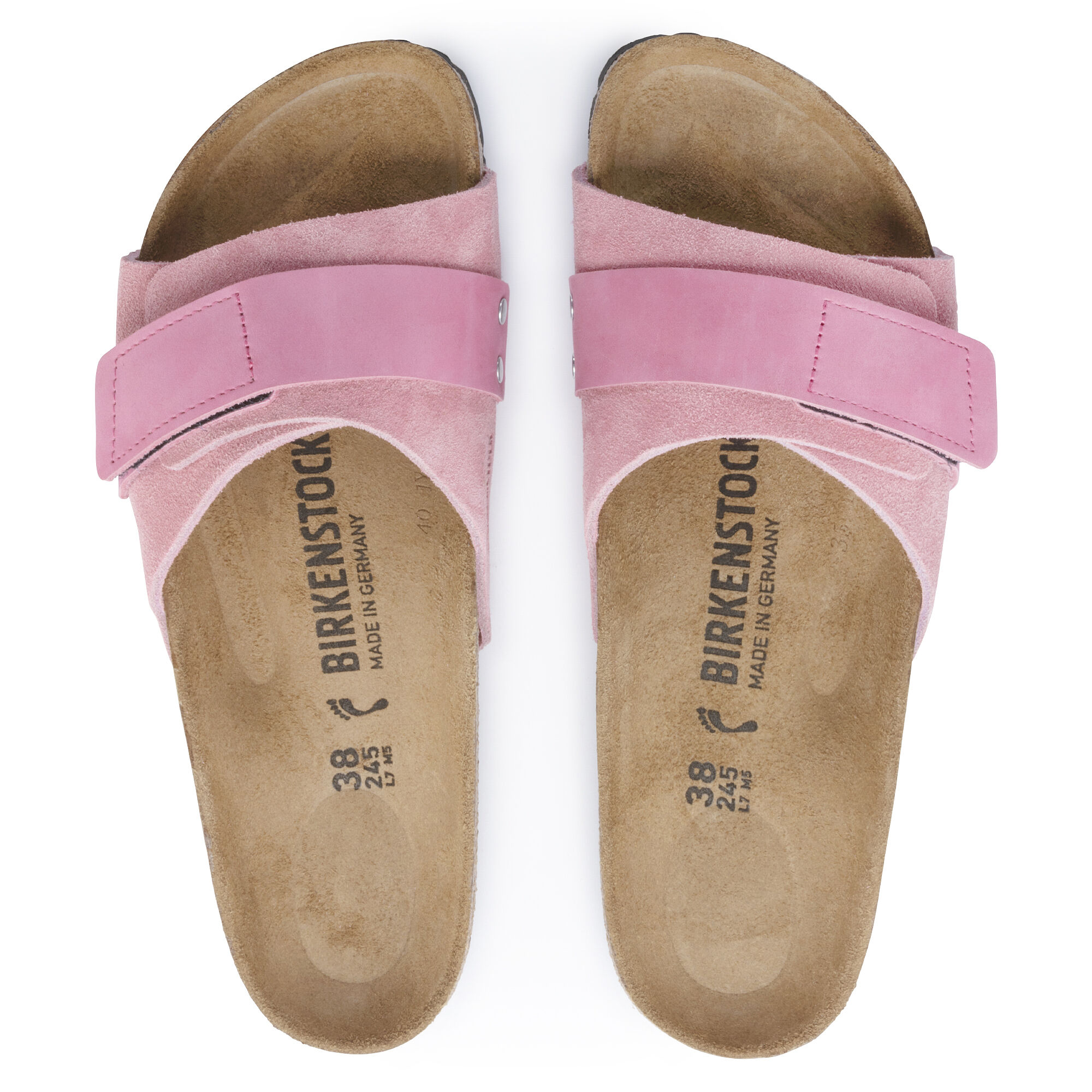 The new Oita slide maximizes your comfort with its minimalist-friendly design. A double hook-and-loop closure lets you customize the fit from the inside out. Its suede upper comes together softly over the foot, secured by a nubuck leather strap. The style is grounded in signature BIRKENSTOCK support, with a cork-latex footbed that shapes to you with wear. Slip on and go.