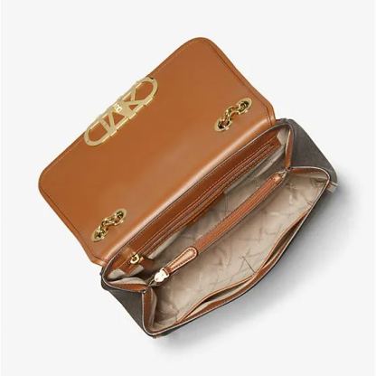 Our Signature-print canvas Parker bag is designed to infuse every day with a little glamour. From the sliding, braided chain strap and contrasting leather trim to the bold Empire hardware on the front, the details are polished and eye-catching. Inside, dedicated zip-and-slip pockets keep a day’s worth of essentials organized. Reach for it when traveling light isn’t an option.