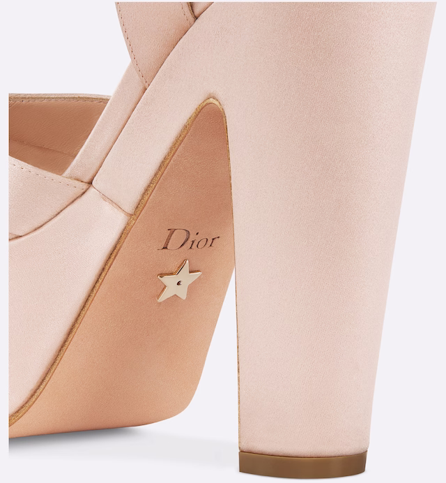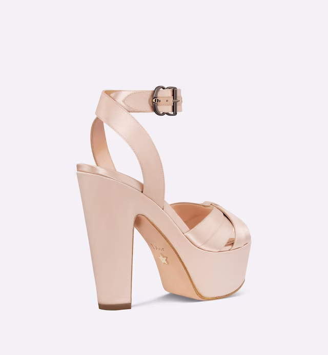 New for Winter 2023, the sophisticated Muse heeled sandal takes inspiration from the Haute Couture fashion show. Crafted in nude satin, it is distinguished by a crossed effect on the front, while the ankle strap is adorned with a metallic CD buckle. Featuring a 13 cm (5) heel and 5 cm (2) platform, the shoe will elevate any evening wear.
