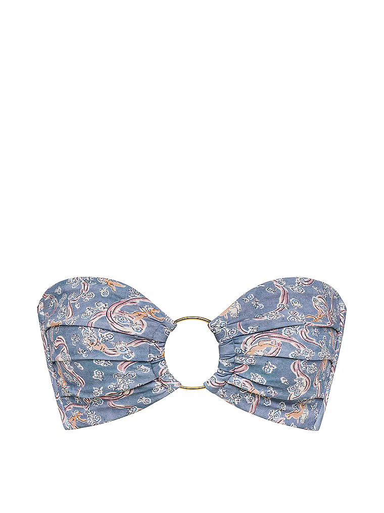 A bandeau style boasts optional, removable straps to knot at the shoulders. The sweetheart neckline and O-ring hardware add retro-chic appeal.