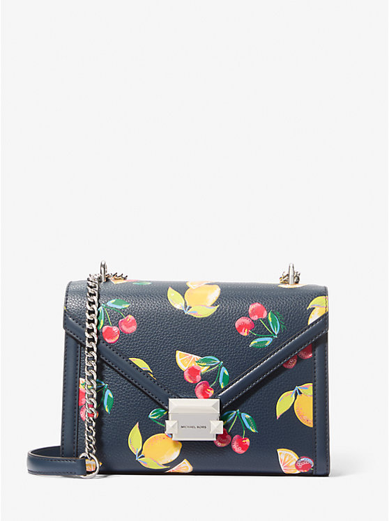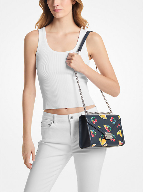 Irresistible for summer, our newest Whitney shoulder bag is designed in a bold tropical fruit print with subtle sequin embellishments for just a touch of shine. An adjustable chain strap converts the shoulder bag to a crossbody, while the logo-lined interior will effortlessly store your phone, wallet and keys. We think it’s the perfect addition to your vacation wardrobe.