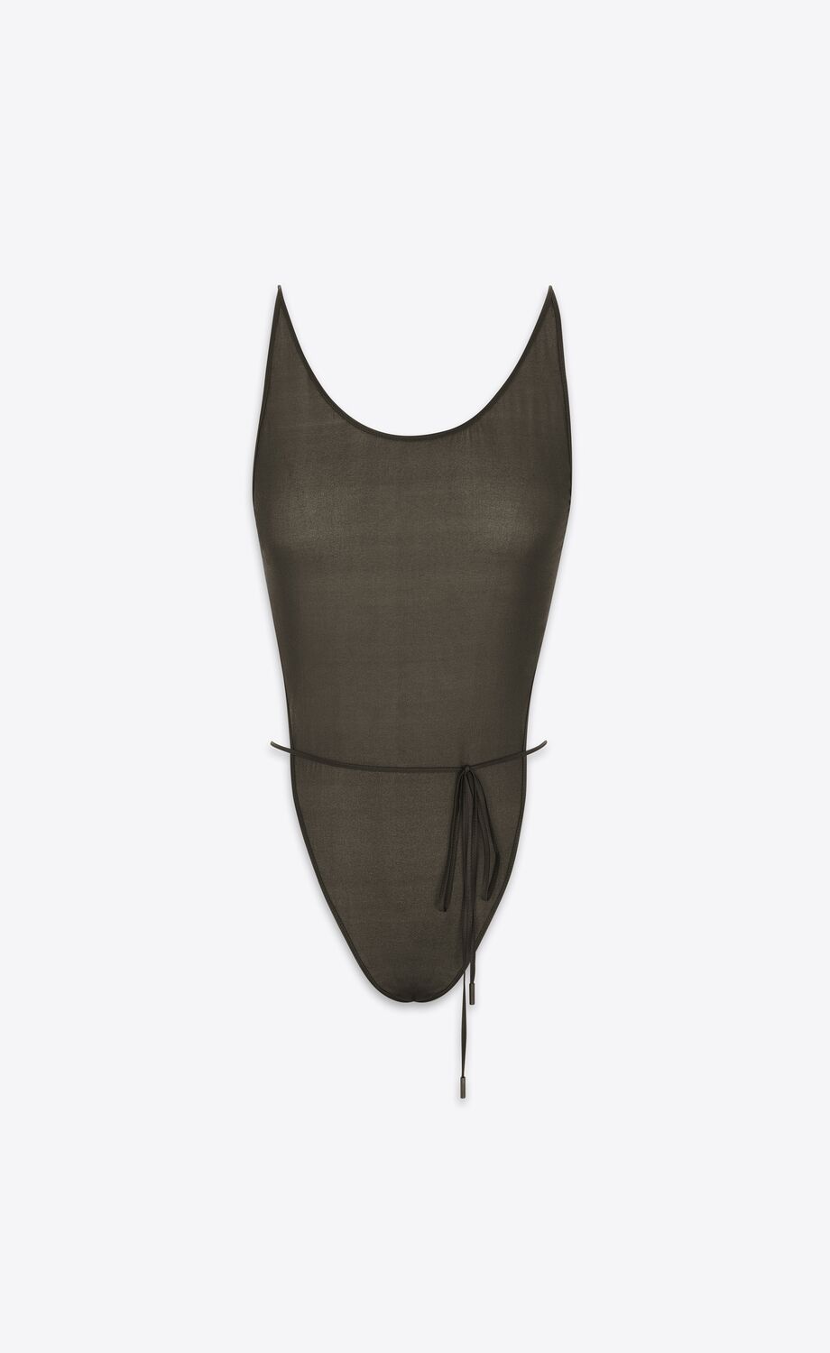 BACKLESS BODYSUIT WITH A ROUND SCOOP NECK AND STRING BACK, FEATURING A HIGH-CUT LEG, ADJUSTABLE STRING WAIST AND BRAZILIAN BOTTOM.