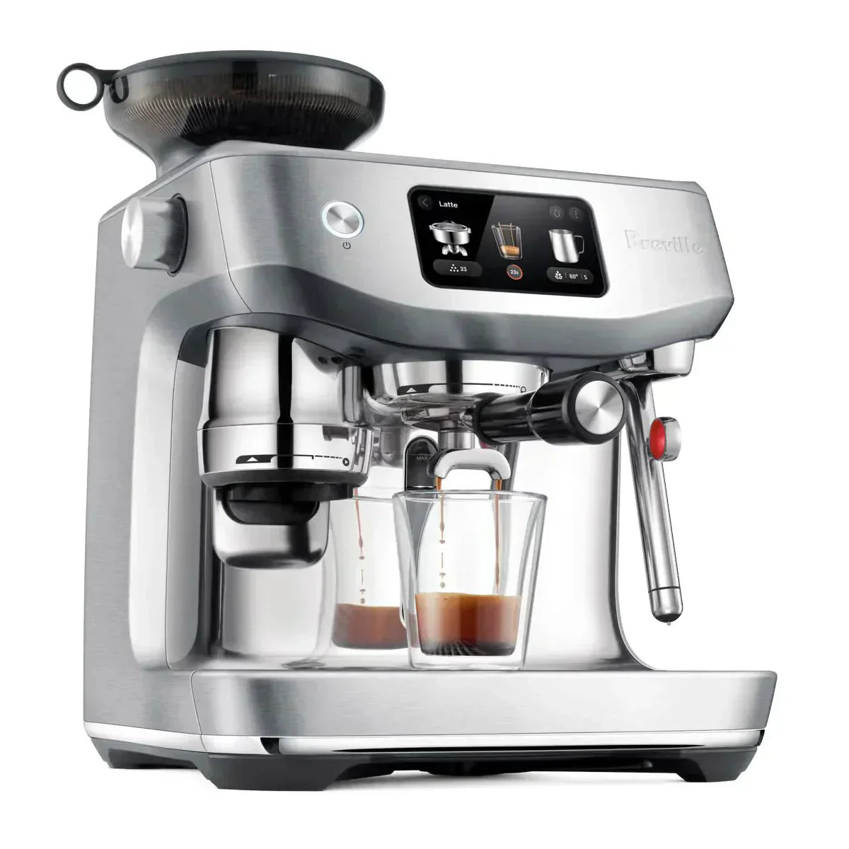 Auto grind, dose & tamp into the professional-style 58 mm portafilter and use Barista Guidance to help you create specialty coffee at home. Auto MilQ™ delivers silky microfoam hands-free, with settings optimized for dairy, soy, almond and oat, plus Auto Queue your milk to start automatically once extraction has finished. The new highly responsive touch screen features pre-programmed café favorites including new Cold Brew & Cold Espresso. All powered by the ThermoJet® heating system which provides fast heat up and is up to 32% more energy efficient*.