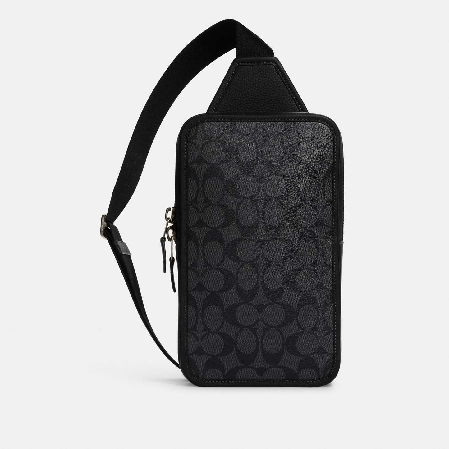 Signature coated canvas and refined pebble leather Inside zip and multifunction pockets Zip closure fabric lining Adjustable shoulder strap for crossbody wear (clip left or right) 6 1/4 (L) x 10 1/2 (H) x 2 1/4 (W) Style No. C9867 | Outlet Sullivan Pack In Signature Canvas - Grey