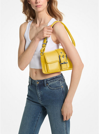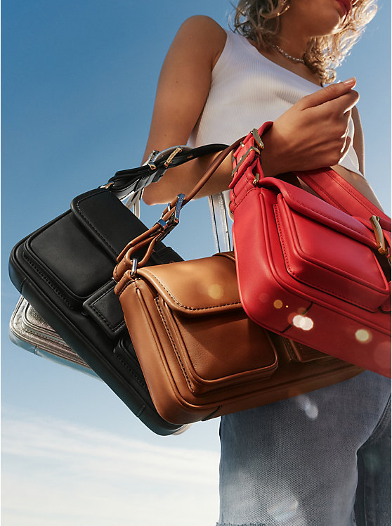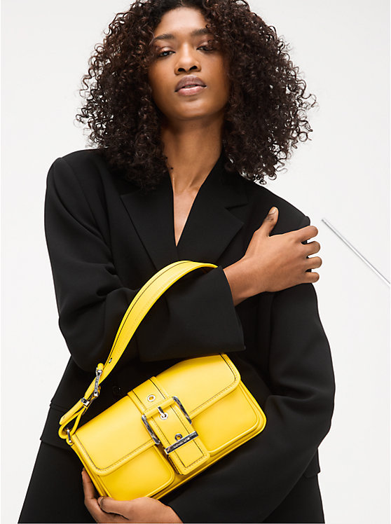 The modern-yet-classic Colby shoulder bag evokes a cool, New York-inspired sensibility. With its sleek rectangular silhouette and bold buckle accent, this chic style is crafted from supple leather and designed to rest seamlessly under your arm. Match your jewelry to the silver-tone hardware.