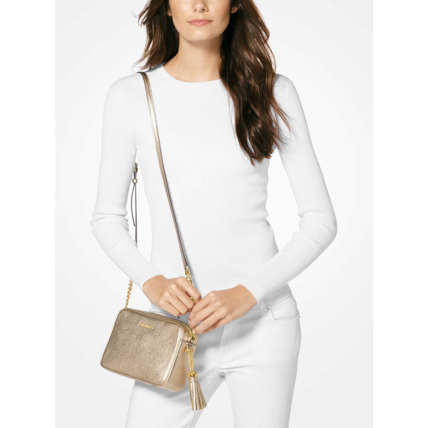 This Ginny crossbody is a standout take on a perennial necessity, thanks to its lightly structured and compact design rendered in metallic pebbled leather. Finished with chain-link accents and an oversized tassel, this lustrous style channels the season's effortless glamour.
