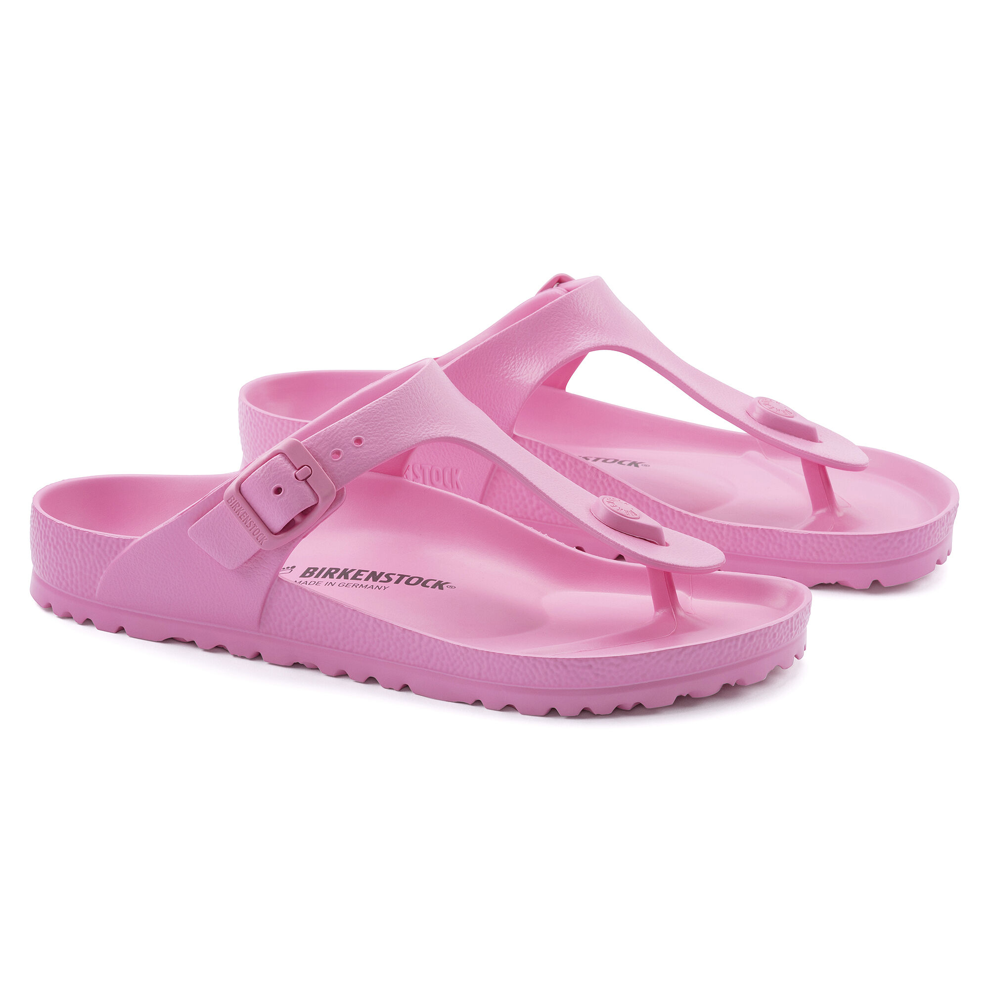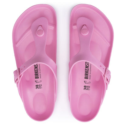 The BIRKENSTOCK Gizeh is our classic thong sandal. Modeled on the cork original, this sandal is made from ultra lightweight and highly flexible EVA. These colorful sandals are shock-absorbent, waterproof, and skin-friendly. Wear them at the beach, in the garden, or in wellness and spa areas. It's the perfect addition to your classic BIRKENSTOCK sandals.