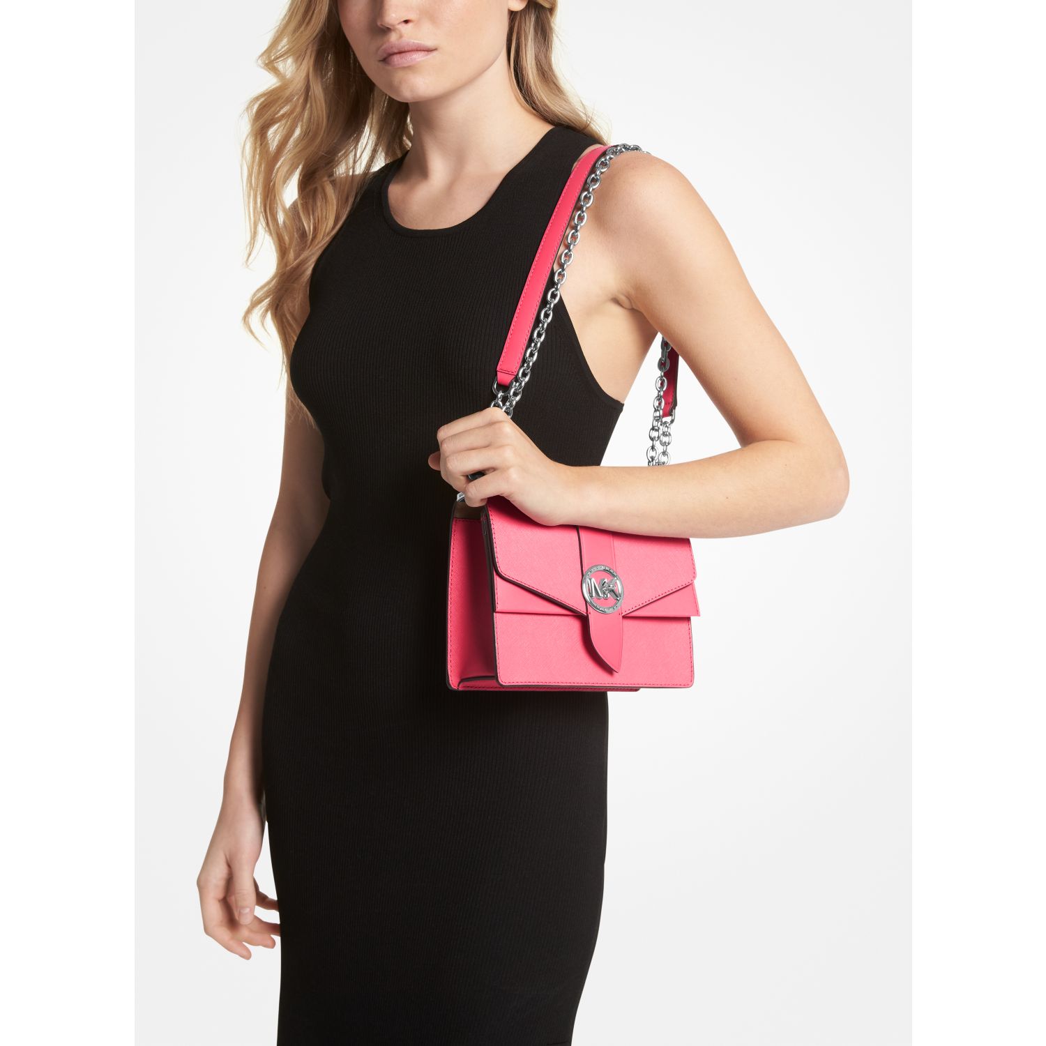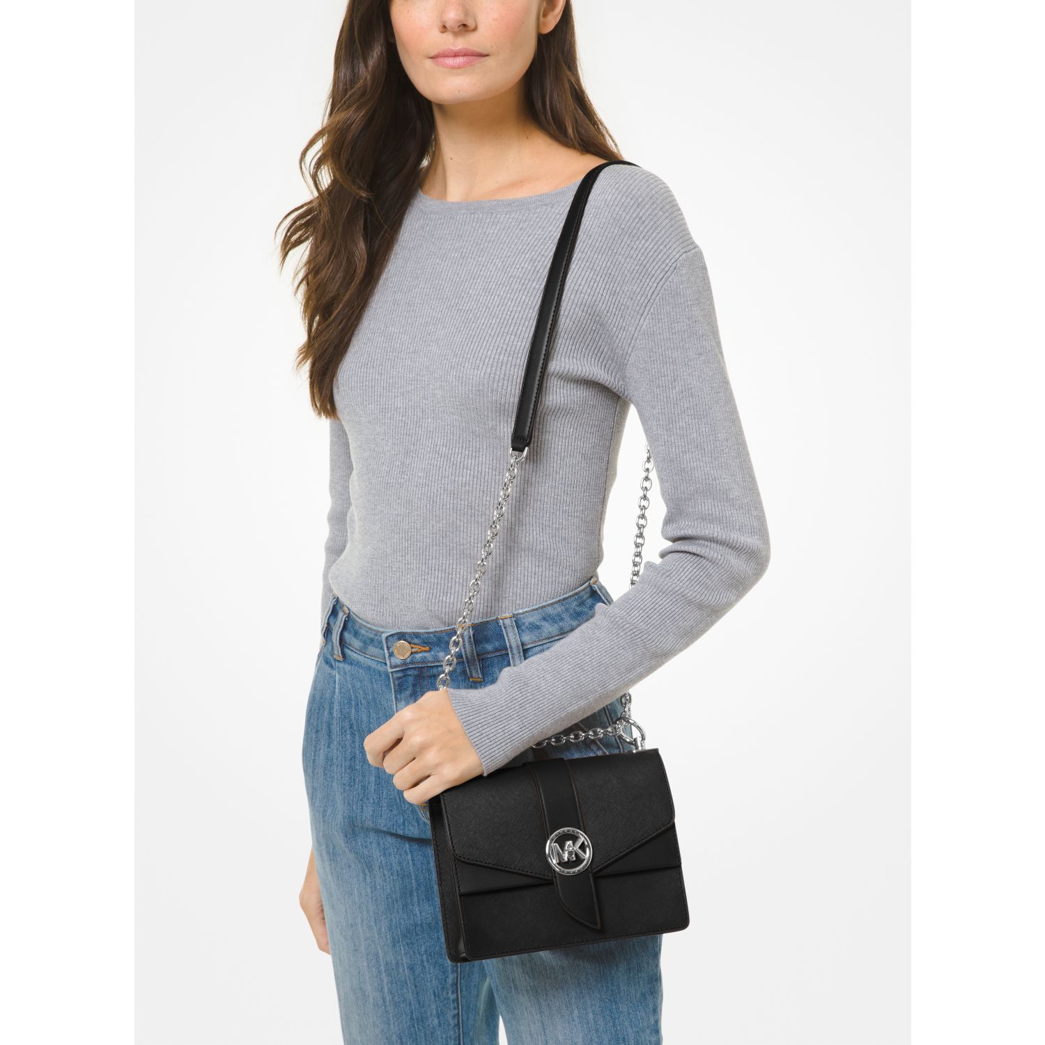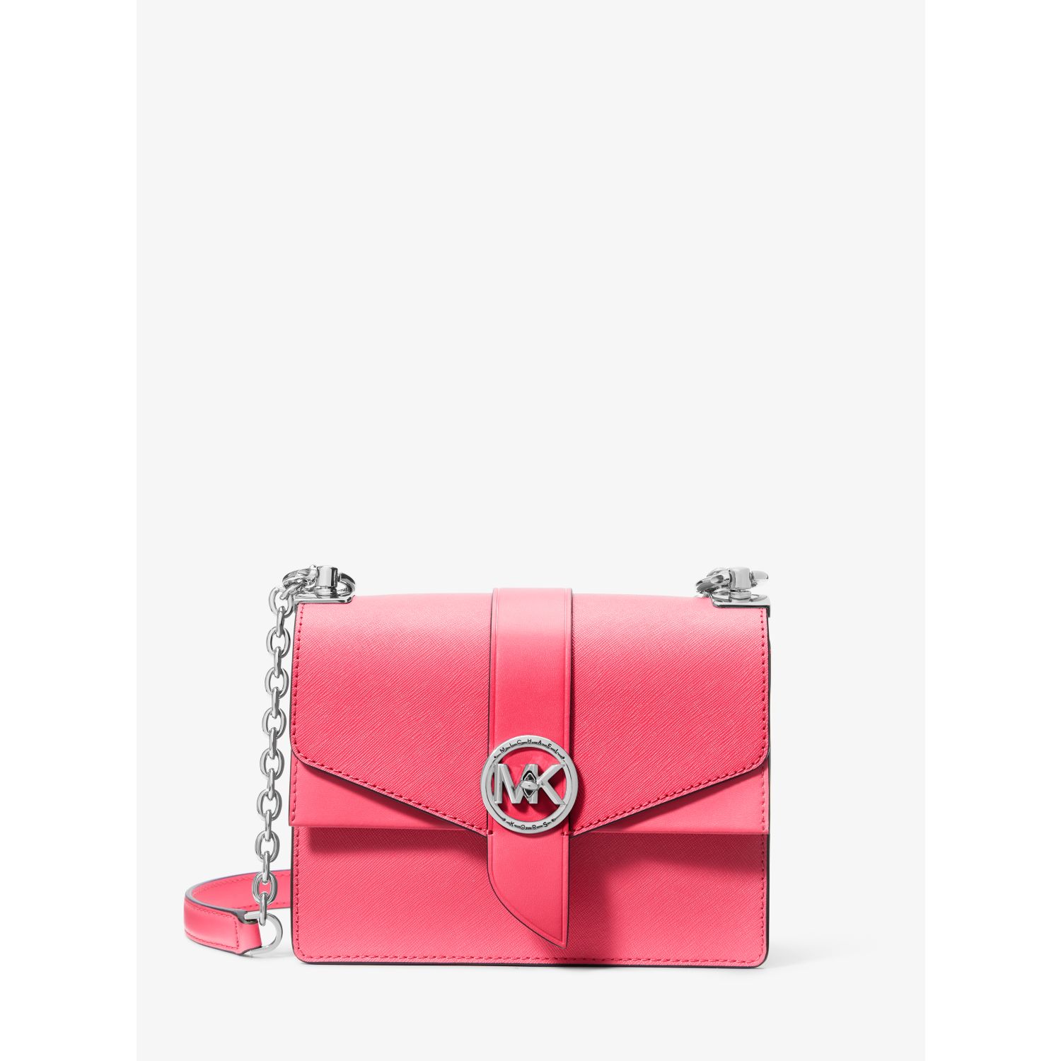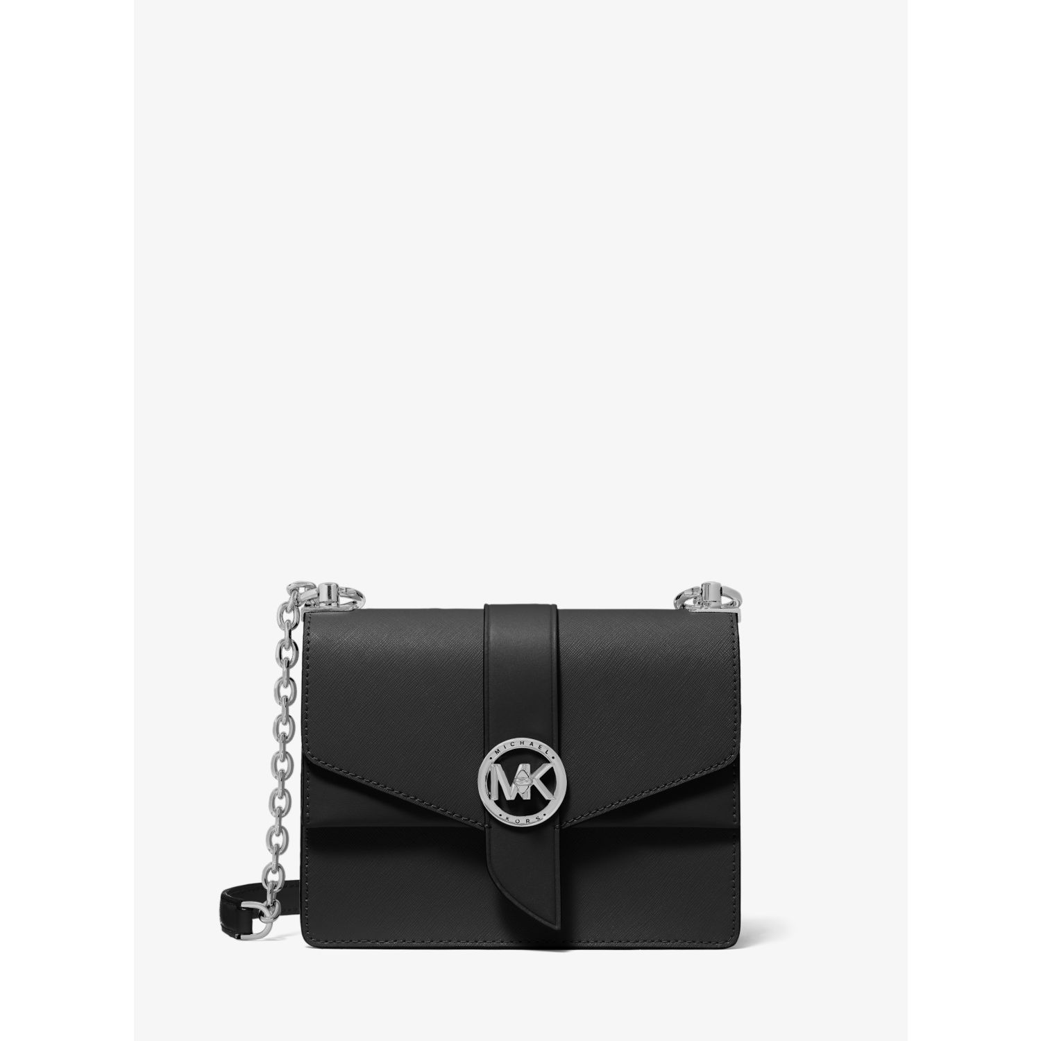 Dress it up or down: our Saffiano leather Greenwich crossbody bag is the ultimate finishing touch to create a polished look. It’s designed in a structured silhouette with a sleek turn-lock closure and an adjustable silver-tone chain strap—store your phone, card case and keys in the pocketed interior.