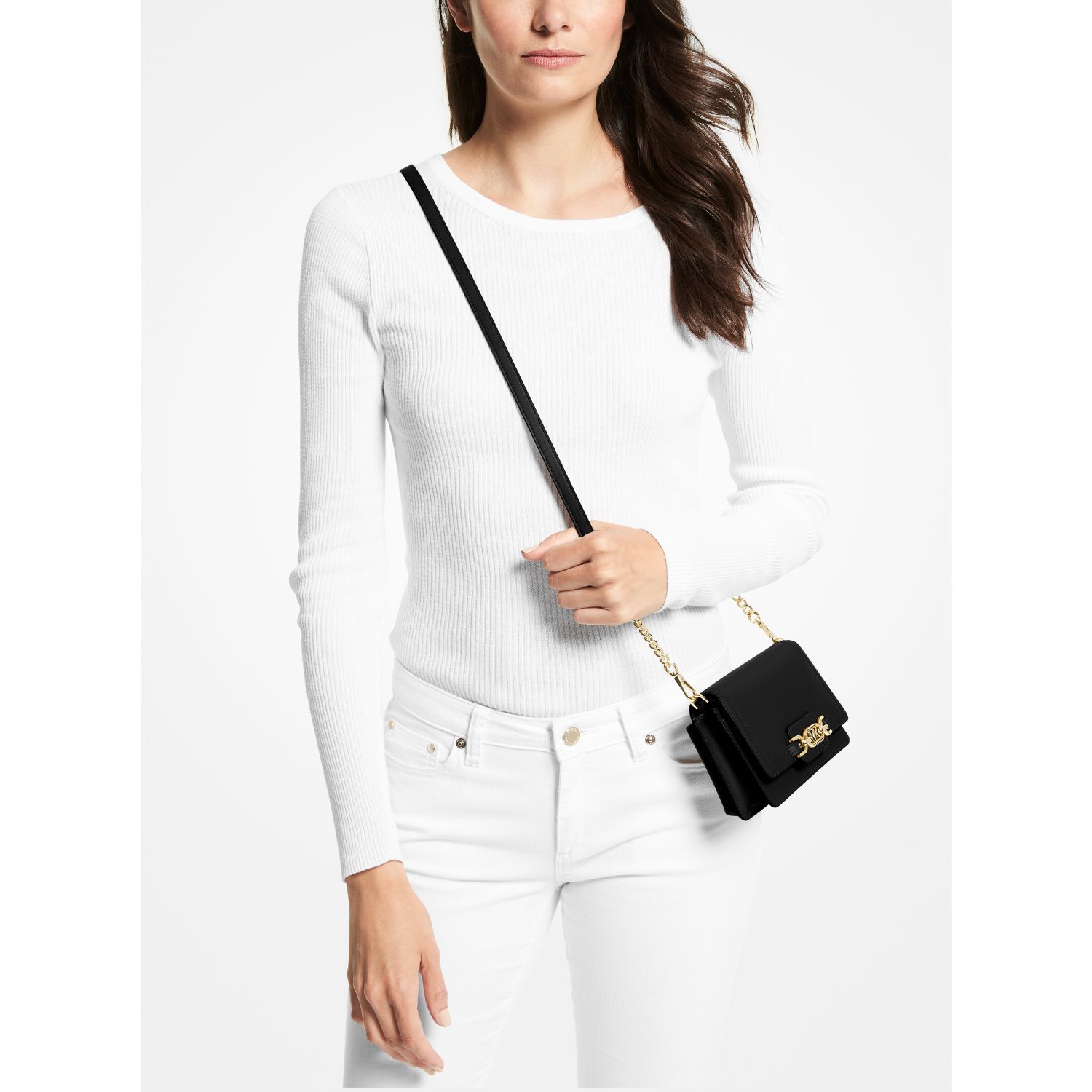 A smart and polished piece for every day, the Heather crossbody bag is crafted supple leather in a modern fold-over silhouette with branded hardware for a novelty finish. It opens to a compact interior that’ll hold just the essentials—think your phone, card case and lipstick.