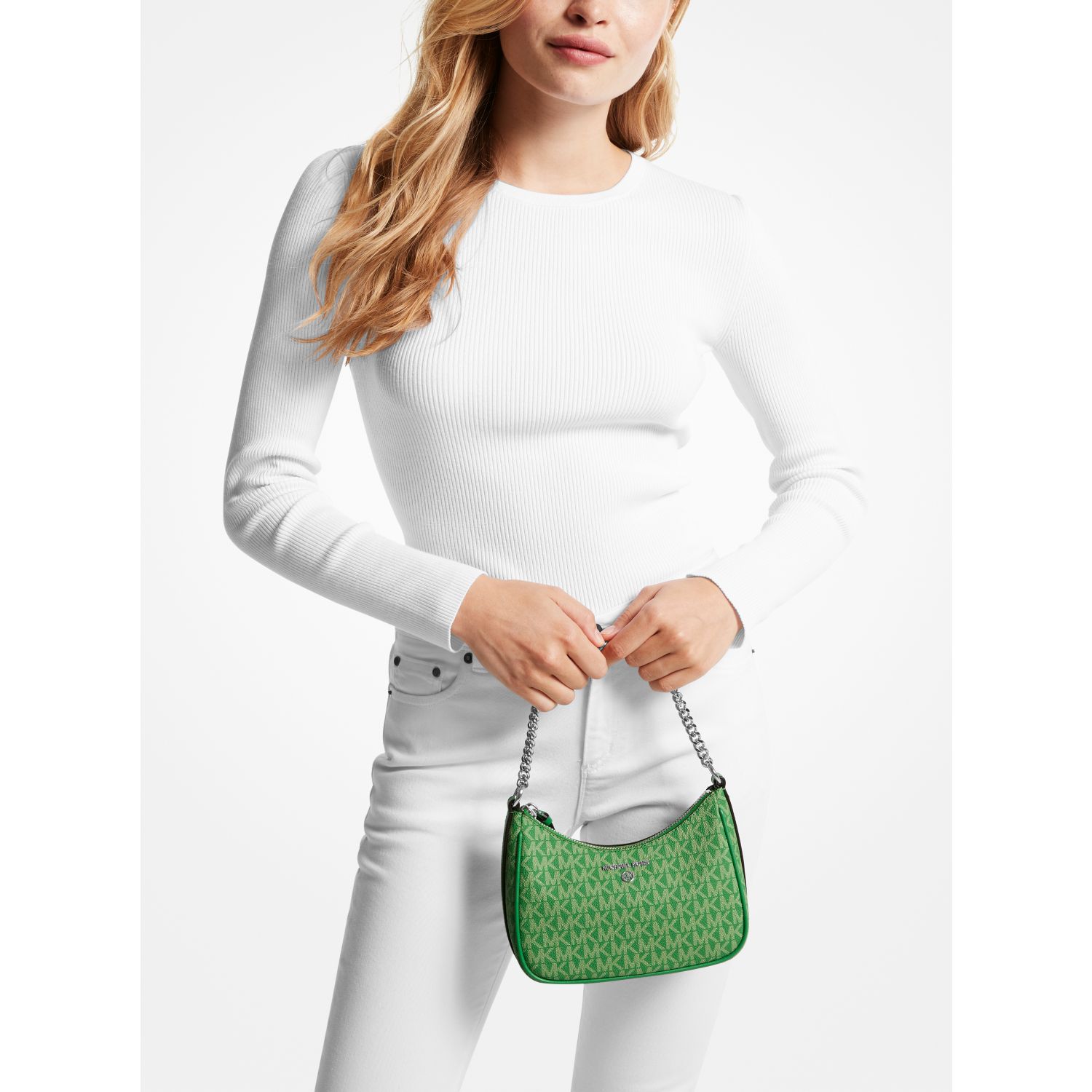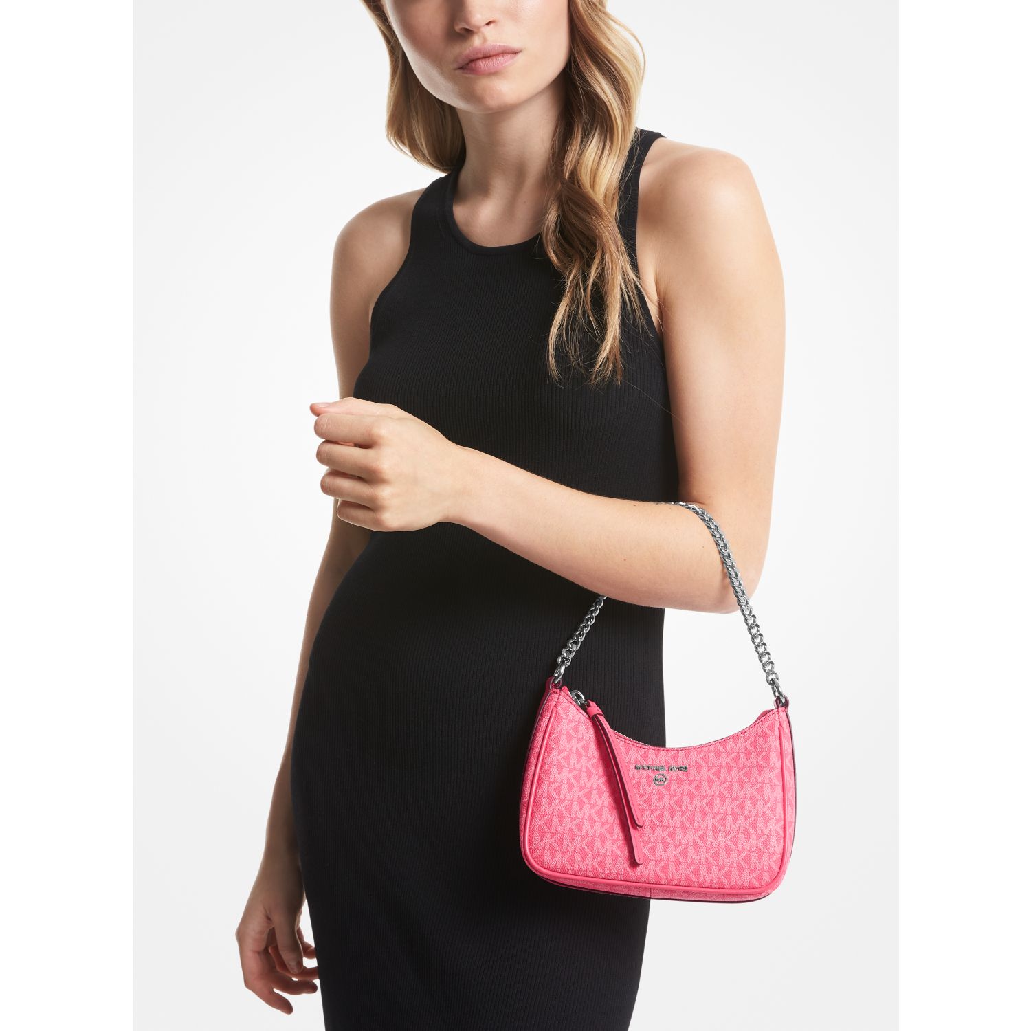 Equal parts timeless and on trend, our Signature-print canvas Jet Set Charm pochette is a modern take on the wardrobe icon. Designed in a compact, structured silhouette for feminine flair, it features contrasting faux leather accents and a chain-link strap for a tough-luxe finish. Endlessly versatile, style it with dresses and jeans alike.