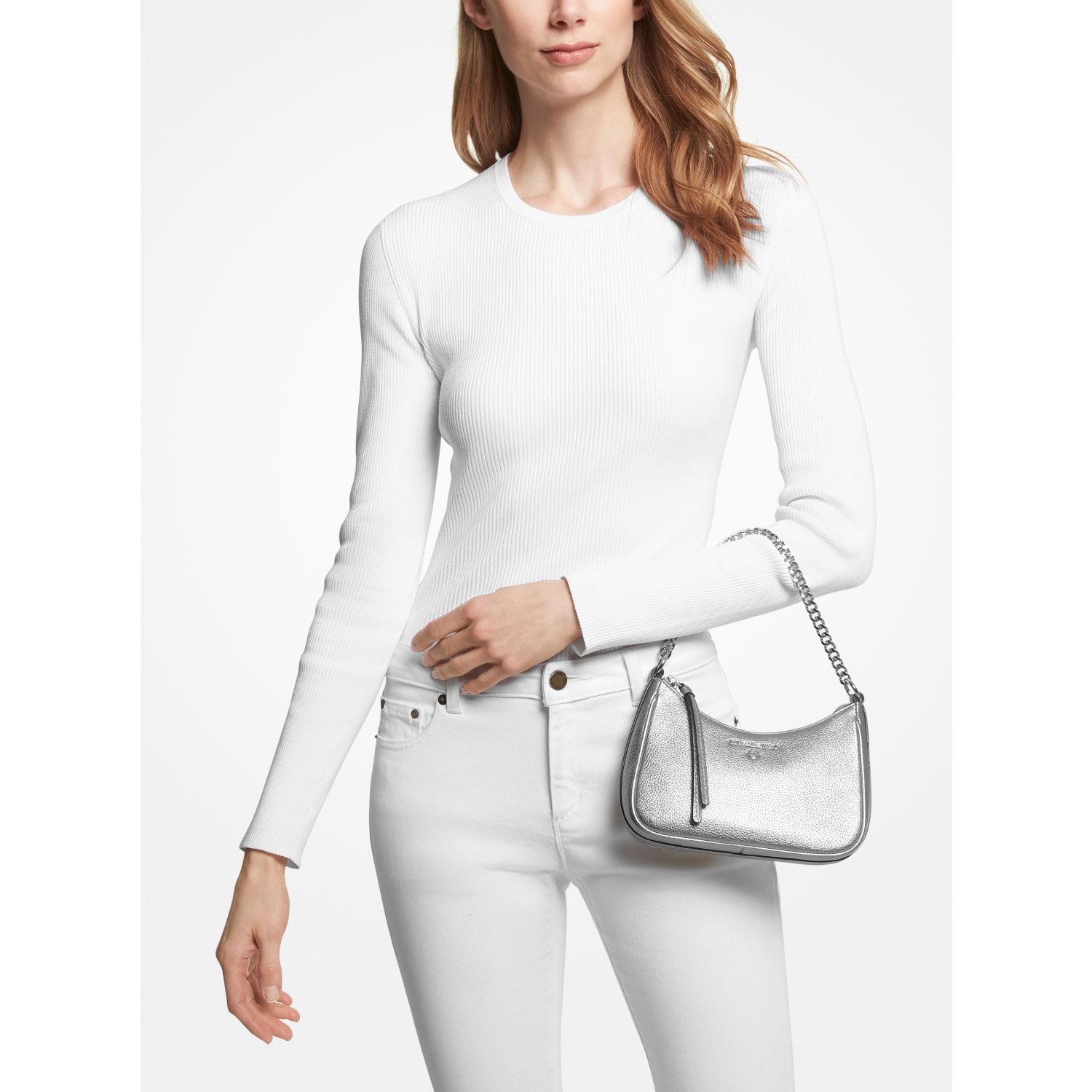 Equal parts timeless and on trend, our leather Jet Set Charm pochette is a modern take on the wardrobe icon. Designed in a compact, structured silhouette for feminine flair, it features a metallic finish and a polished chain-link strap that lends tough-luxe appeal. Endlessly versatile, it can be easily styled with dresses and jeans alike.
