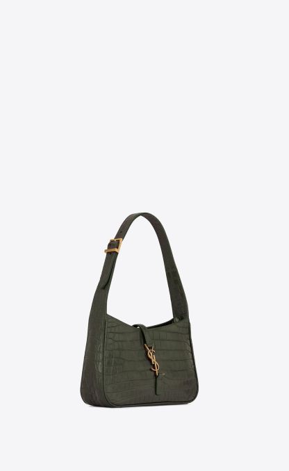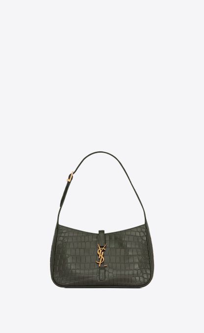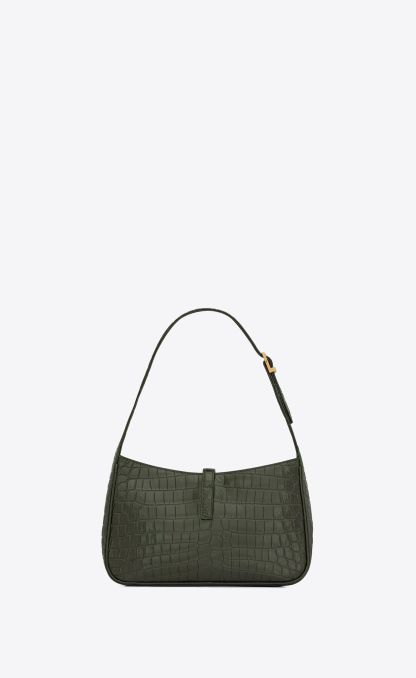 LE 5 À 7 IN CROCODILE-EMBOSSED LEATHER-VERT FONCE