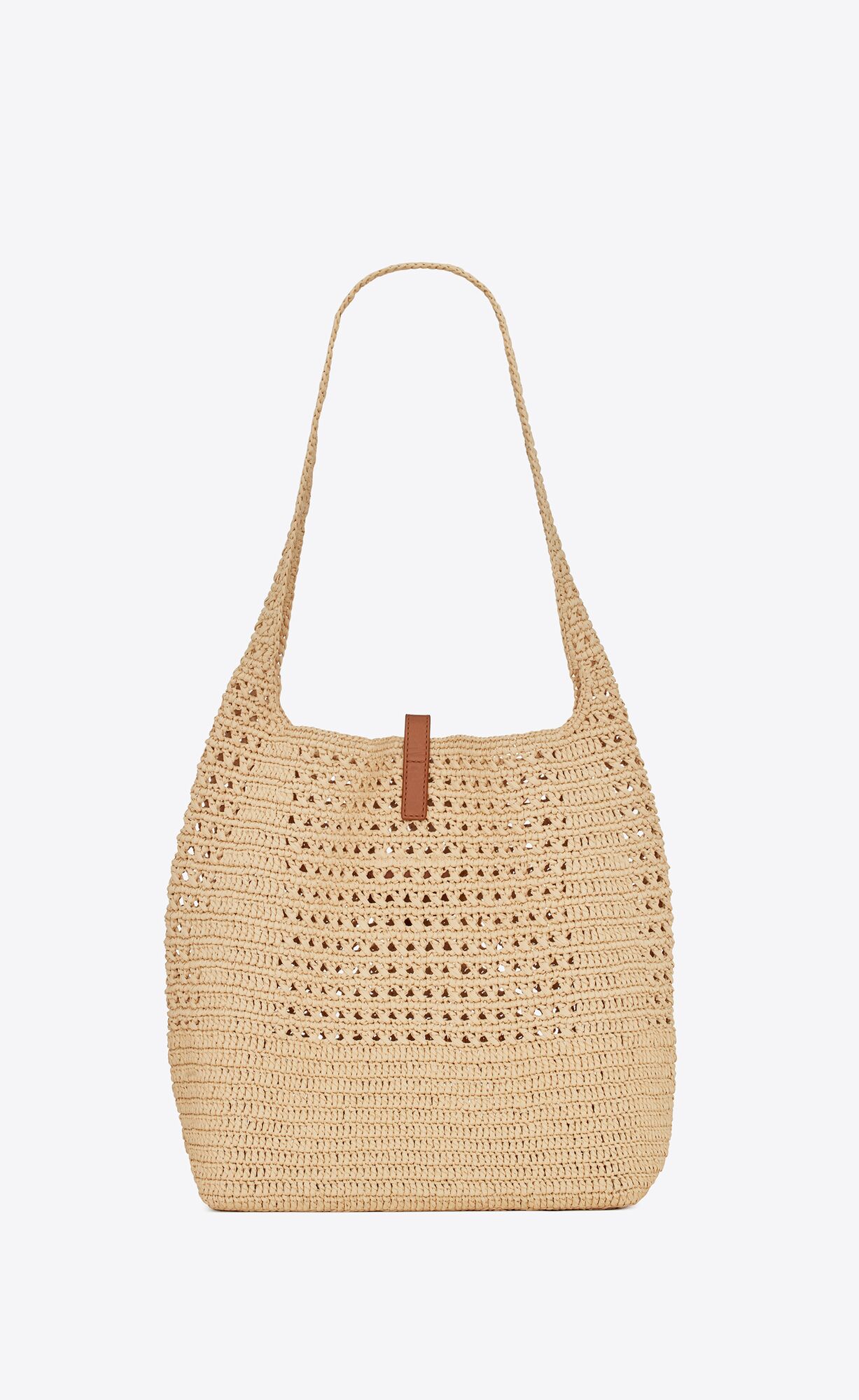 HOBO BAG WITH A CROCHET MOTIF AND A COMFORTABLE SHOULDER STRAP, FEATURING AN INTERLACED METAL YSL INITIALS HOOK CLOSURE.