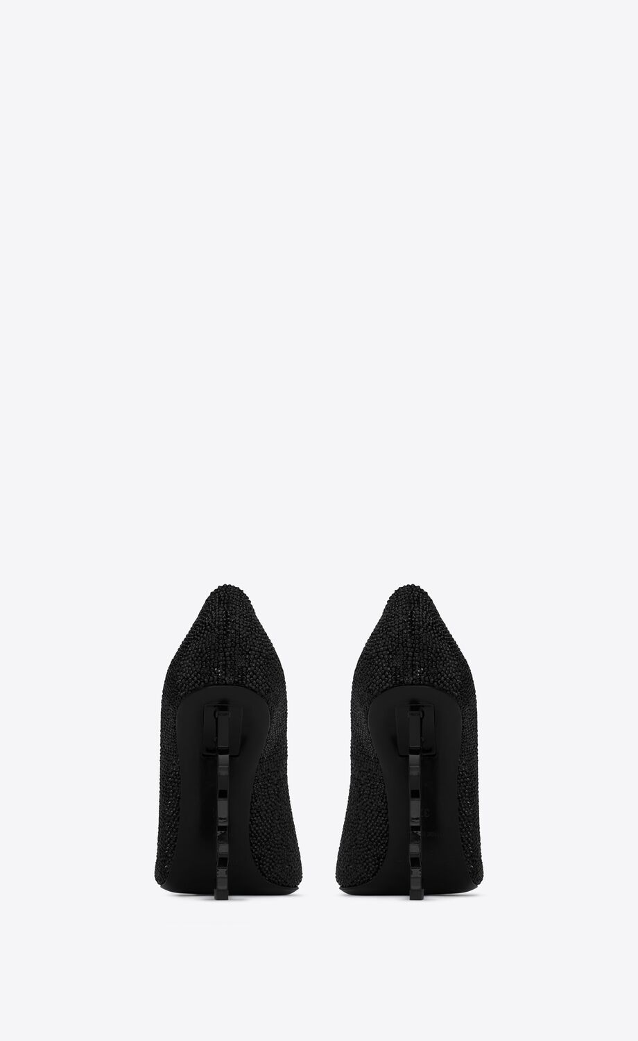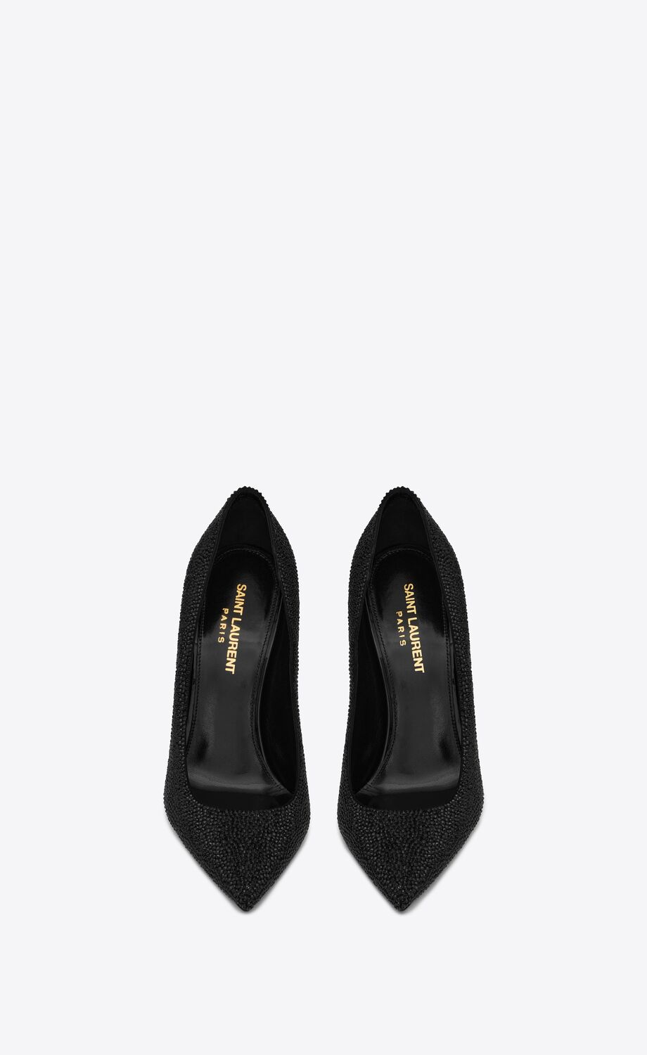 PUMPS IN ALL-OVER RHINESTONES WITH POINTED TOE, STRUCTURAL METAL CASSANDRE HEEL AND LOW-CUT VAMP.