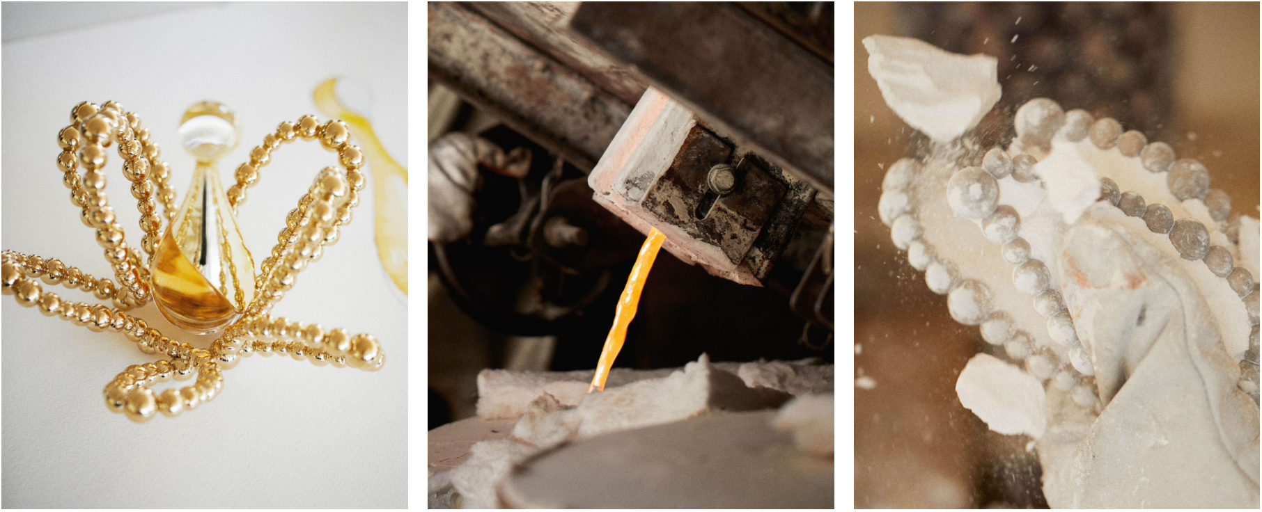 Jean-Michel Othoniel brings you "L'Or de J'adore", a piece that orchestrates a relationship between the artist and the iconic fragrance. Inspired by the amphora's glass curves, Othoniel has imagined a flower-like case to house the first J'adore fragrance by Francis Kurkdjian.