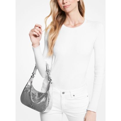 Piper Small Metallic Snake Embossed Leather Shoulder Bag