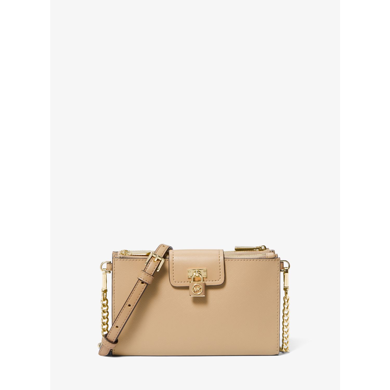 Our Ruby crossbody bag is the surest way to add instant polish your look. Punctuated with a polished padlock charm, this Saffiano leather style features modern details like dedicated zip compartments and an array of slip pockets for storing cards and bills. A snap closure ensures your essentials are safe and secure.