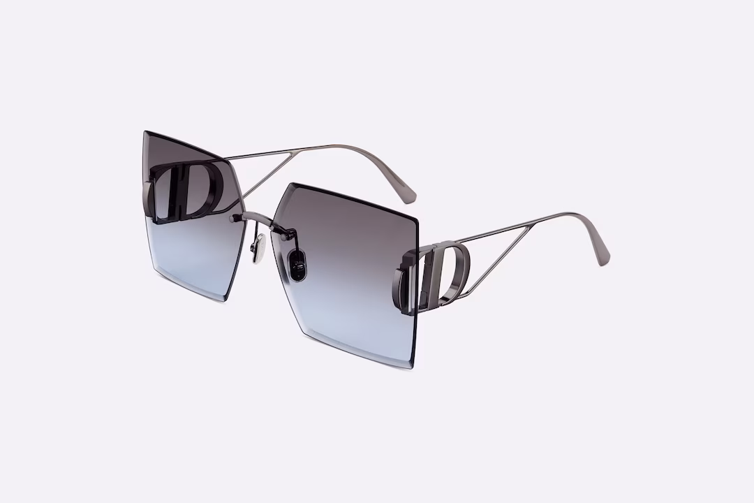 The 30Montaigne S7U sunglasses enhance the House's already iconic line. The couture-spirit style is characterized by its sophisticated rimless square design. The ruthenium-finish metal temples are adorned with a functional CD signature, inspired by the hallmark clasp of the eponymous bag. Completed with gray-to-blue gradient lenses, the statement pair adds a modern touch to a style that is unmistakably.