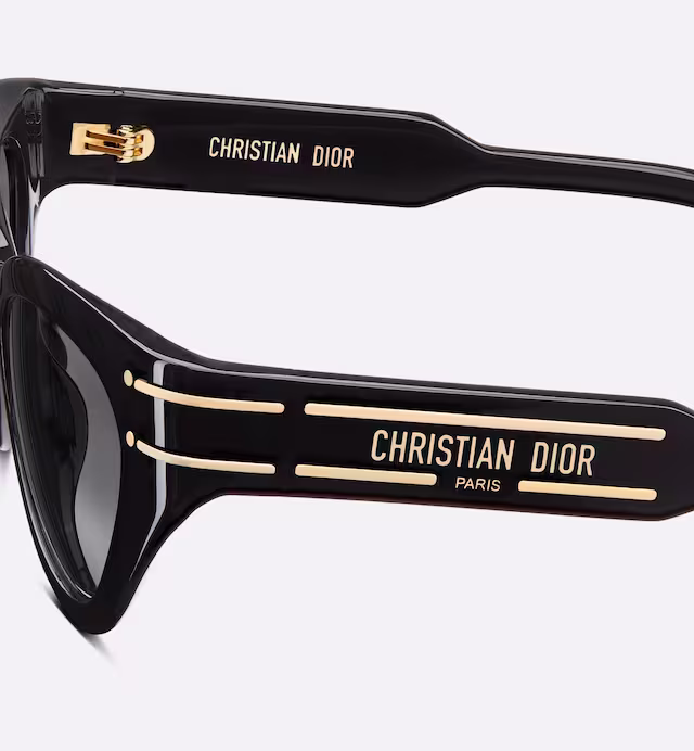 The Signature B7I sunglasses enhance the House's iconic line with an elegant low butterfly style. The ultra-thin and lightweight black acetate frame features temples embellished with the Paris signature and gold-finish metal lines that extend toward the lenses. Completed by gray gradient lenses, the new essential style will elevate all looks with a couture touch.