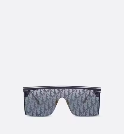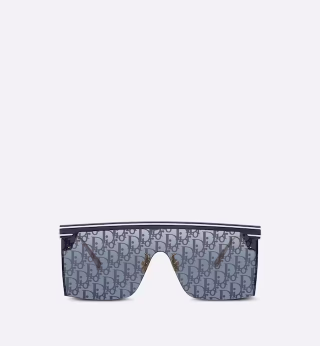 The Club M1U sunglasses are a rectangular-shaped mask with a sportswear appeal. In keeping with the silver mirrored lenses in a blue Oblique motif, the design features large spoilers that lend a modern and graphic touch. The navy blue matte acetate frame contrasts with a brilliant-finish white line detail and signature.