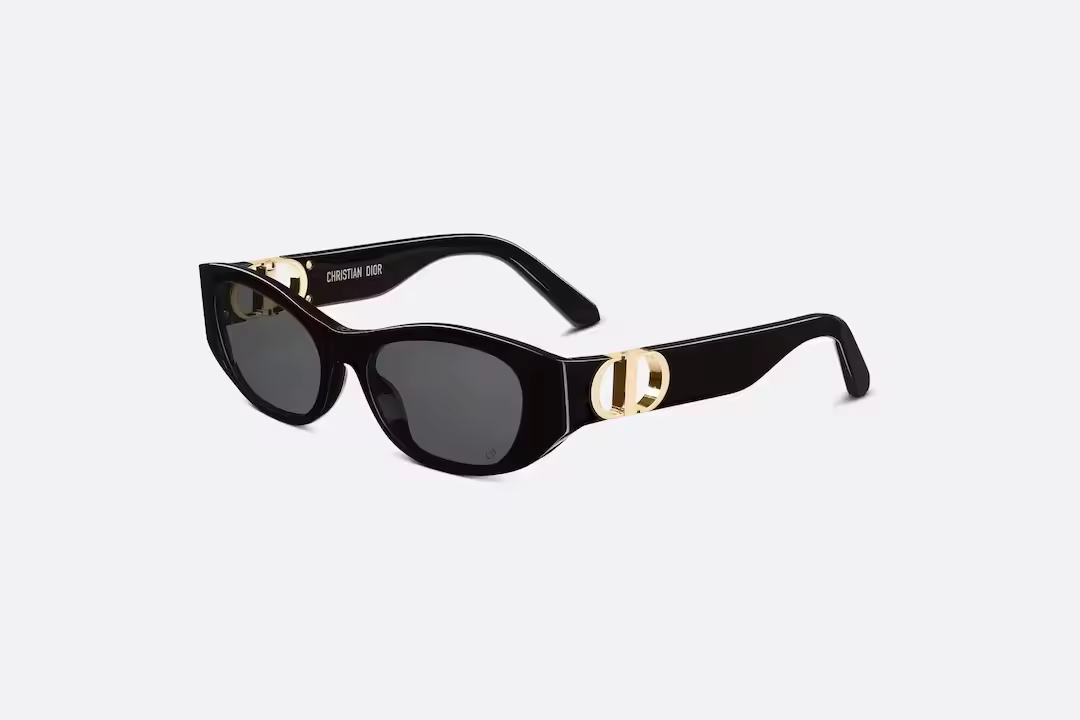 New for Winter 2023, the 30Montaigne S9U sunglasses stand out with an elegant and urban aesthetic. The butterfly frame in black acetate is embellished with a functional CD hinge in gold-finish metal. Completed by gray lenses, the style will lend a couture touch to any look.