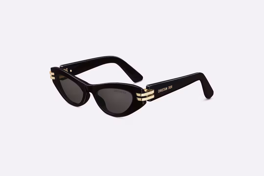 Shown at the Fall-Winter 2023-2024 fashion show, the B1U sunglasses offer a new take on the House's CD signature. The low butterfly frame in black acetate is enhanced by a gold-finish metal CD hinge inspired by the 30 Montaigne jewelry collection. Completed by gray lenses, the new essential style will elevate all looks with a touch of modern sophistication.